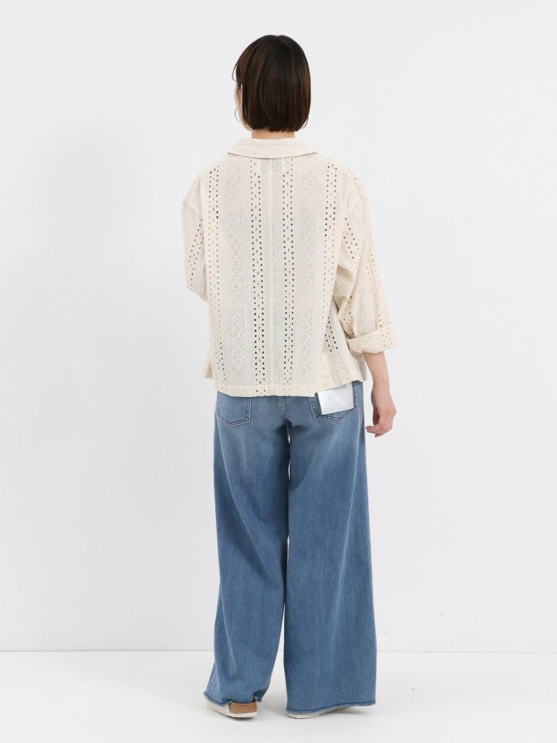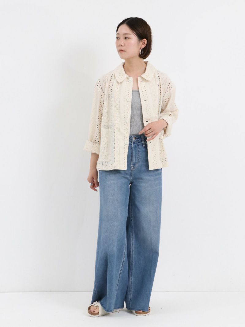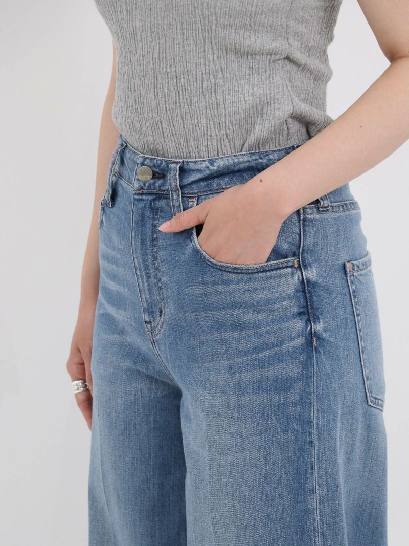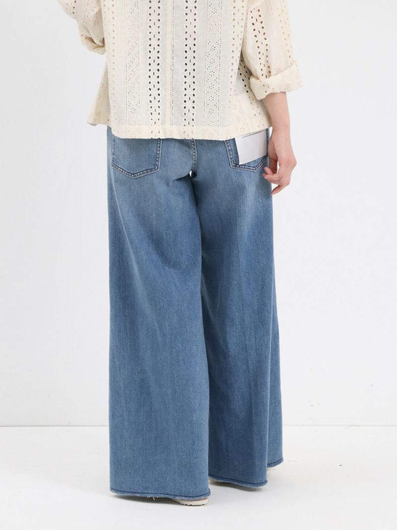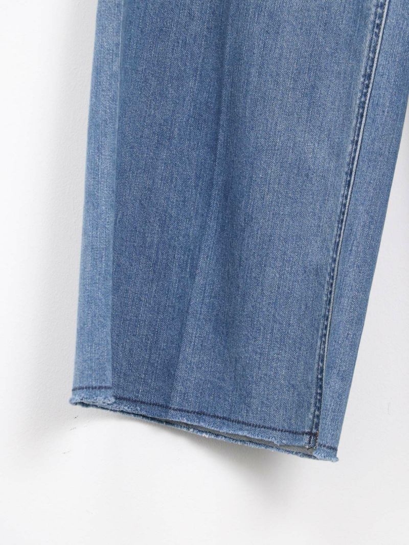 裾にかけて程よく広がるワイドシルエットのWILD GINGER。 裾やポケット部分のさりげないダメージ加工がこなれ感を演出し、センタープレスが脚を綺麗に見せてくれます。これからのTシャツスタイルをアップデートさせてくれるシルエットのデニムです。