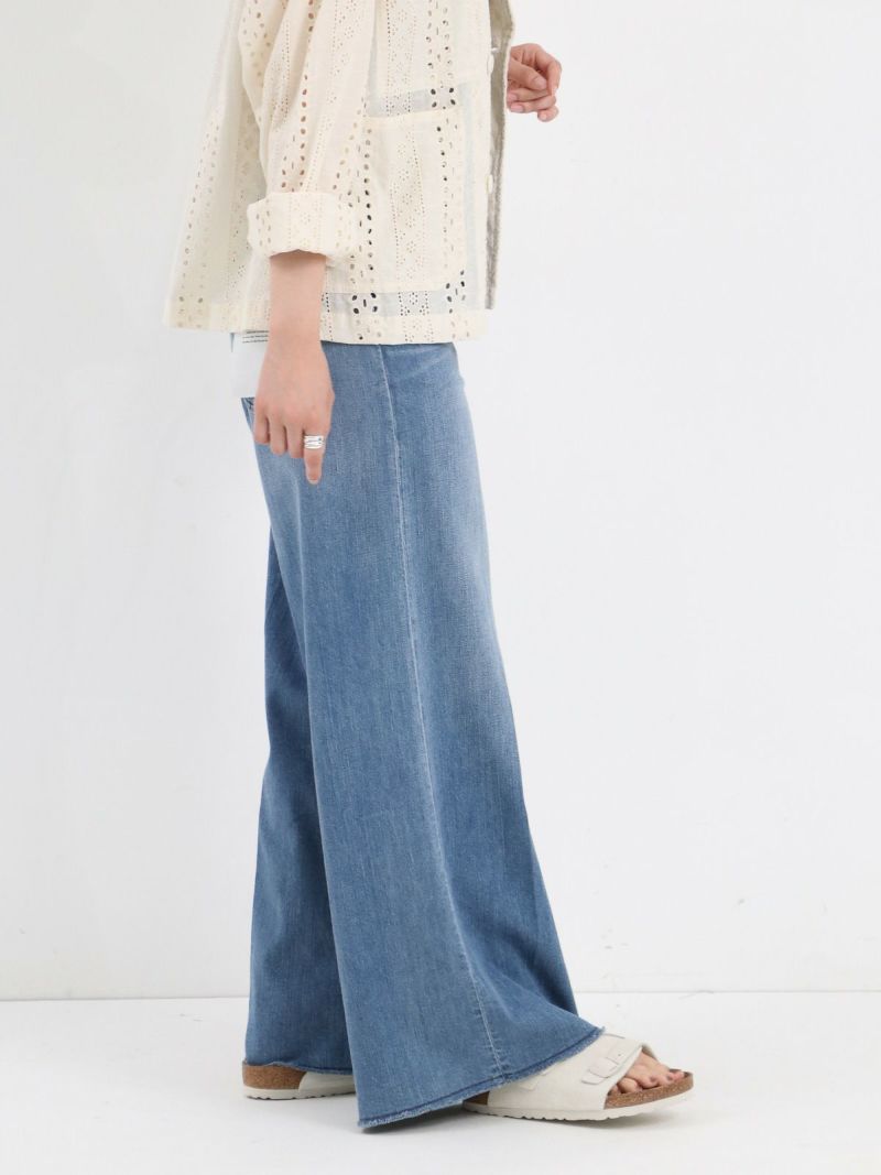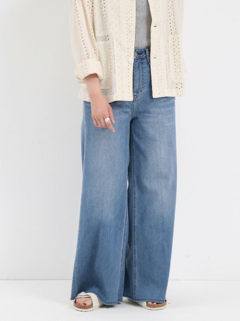 裾にかけて程よく広がるワイドシルエットのWILD GINGER。 裾やポケット部分のさりげないダメージ加工がこなれ感を演出し、センタープレスが脚を綺麗に見せてくれます。これからのTシャツスタイルをアップデートさせてくれるシルエットのデニムです。