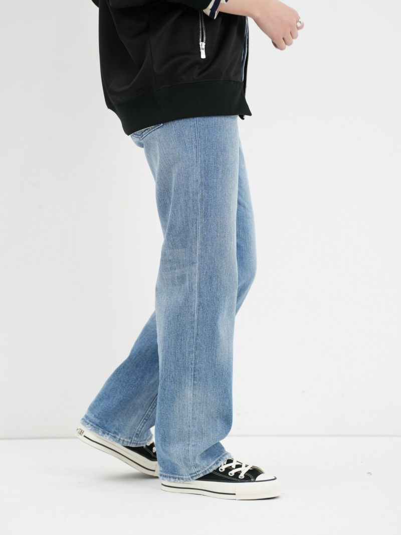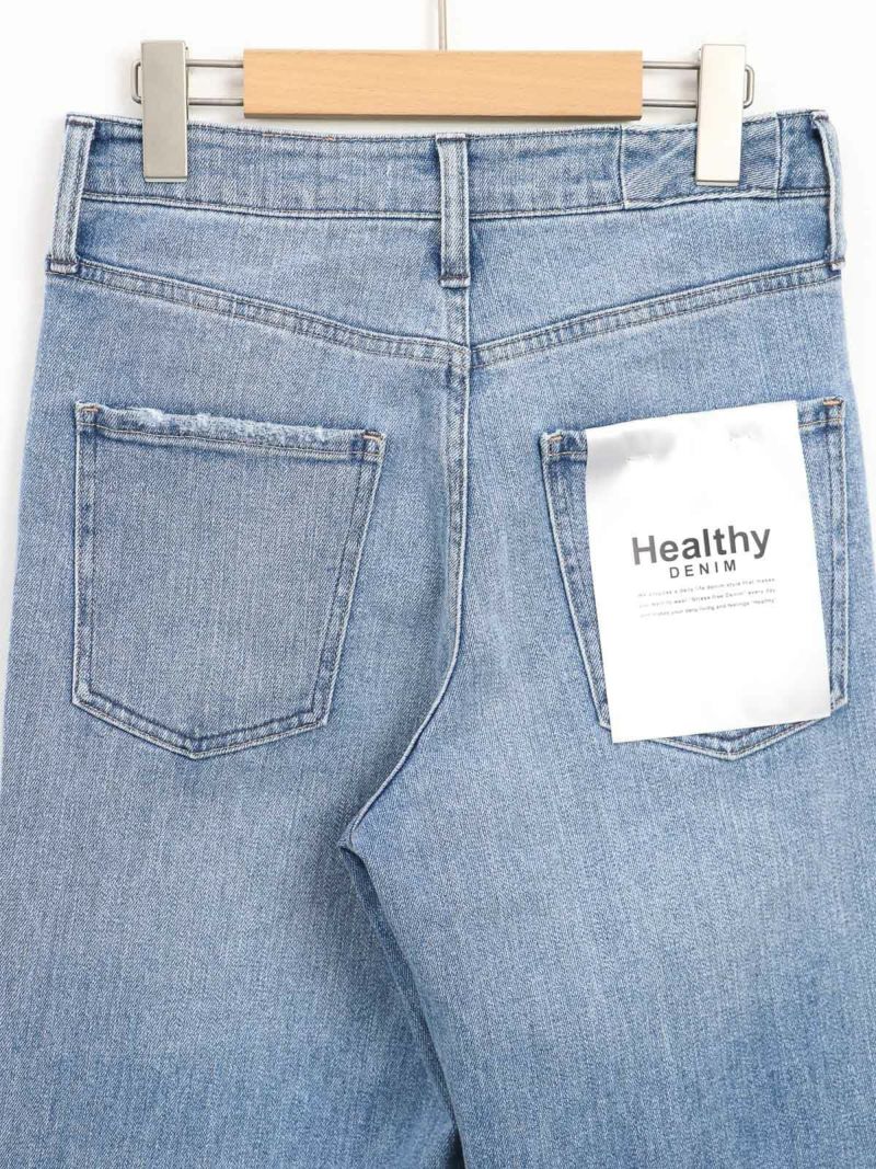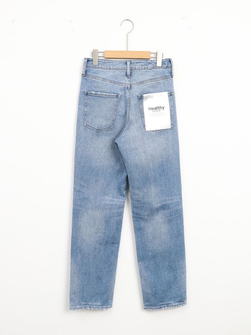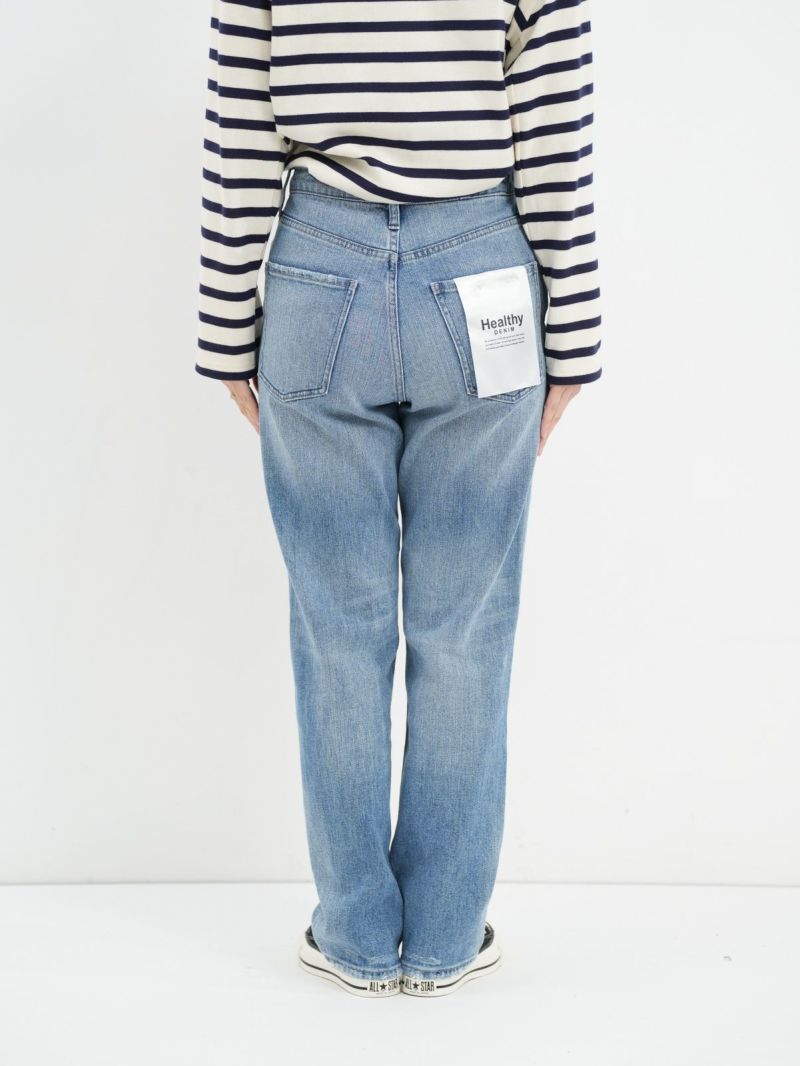 Healthy denimのハイライズストレートデニム「Tallow(タロー)」。 ストレッチが効いていて履き心地がとても良く、デニム本来の経年変化加工を楽しめます。 ベーシックな形で合わせるアイテムを選ばずスタイリングを楽しめます。