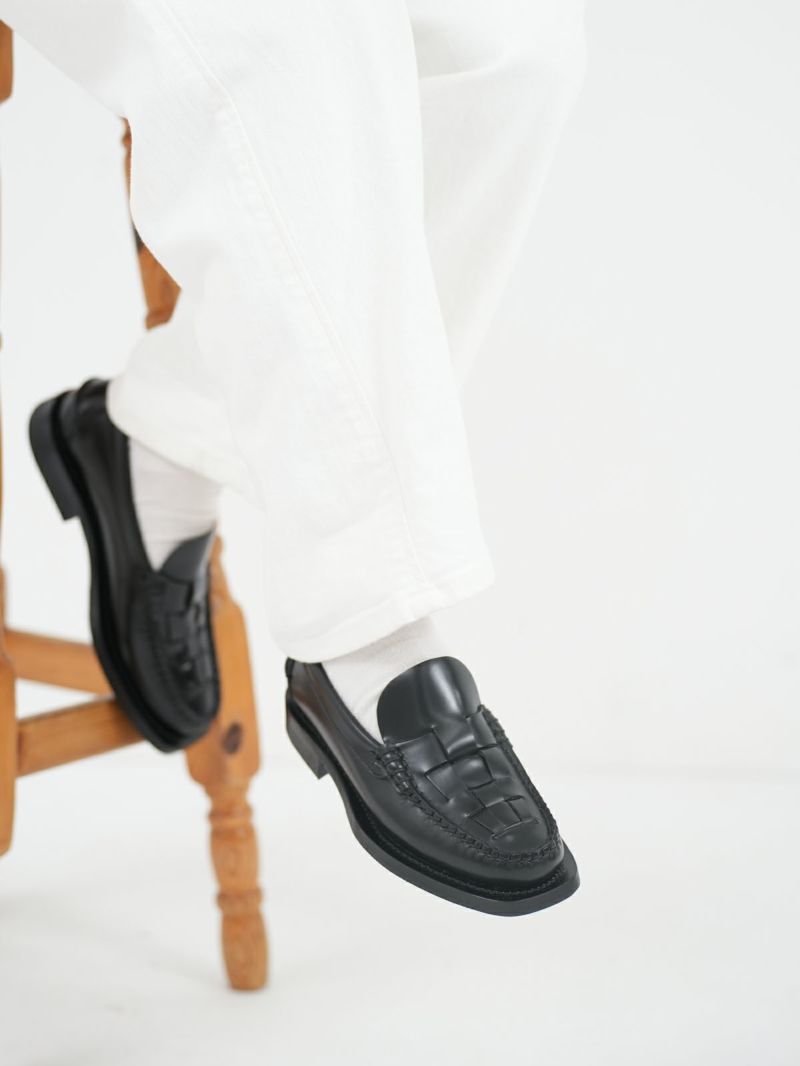 ノンベラ インターウヴンディテール スリッポン ローファー (ブラック)。