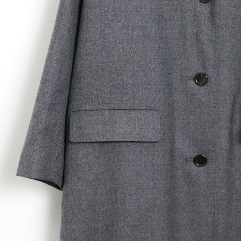 Manna定番のウールサキソニーコート。 程よく光沢感のある上品な素材感に、長く愛用できるシンプルかつモードなデザインが魅力です。あえてカジュアルにデニムやチノパンツなどと合わせても◎寒くなったらインナーダウンなどと合わせるのもおすすめです。