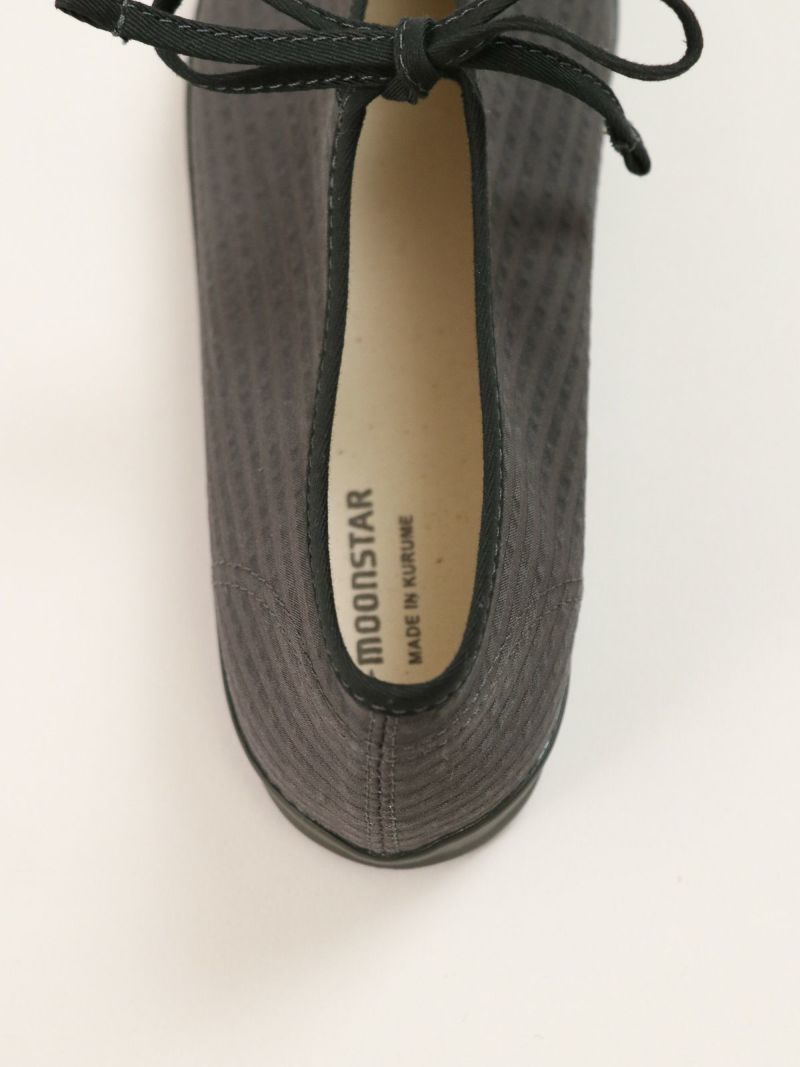 ゴム産業の町として知られる福岡県久留米市で、明治6年(1873年)に地下足袋から始まり140年もの間、靴を作り続けてきた。人の足型を研究し、特にラバー素材にこだわることで履き心地の良さを保ち続けてきました。そして、ムーンスターが新たな一歩を踏み出すために、140年間の靴作りへの自信と誇りを込めた“MADE IN KURUME”の靴がここに誕生しました。