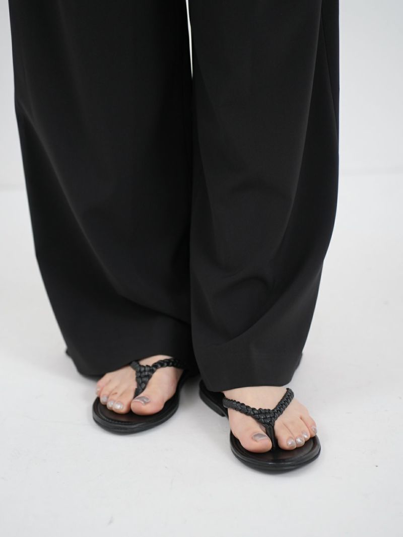 レザーを丁寧に編み込んだ細身のストラップが魅力の「maliks」サンダル。