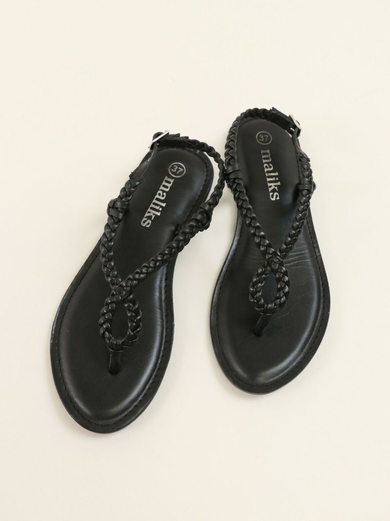 レザーを丁寧に編み込んだ細身のストラップが魅力の「maliks」サンダル。