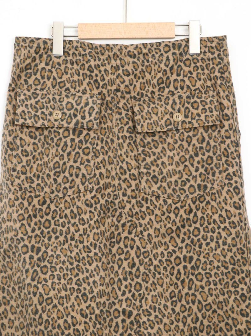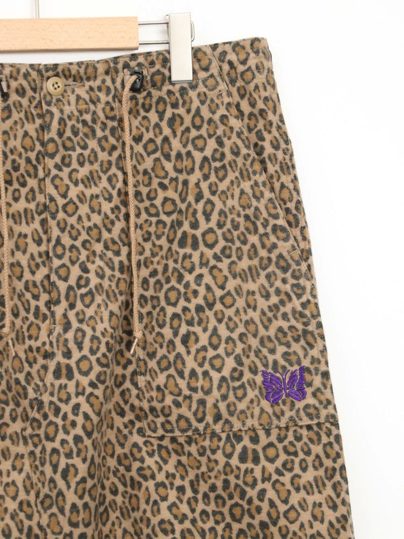 〈NEEDLES〉定番のドローコードウエスト仕様のリラックス感が魅力のファティーグスカート。 シンプル&ベーシックなデザインで、シーズンや時代を問わず幅広く活躍する万能アイテムです。個性的なレオパード柄のファブリックは、ブラッシュド加工により肌触りが良く、秋冬らしい温かみを感じる一着です。