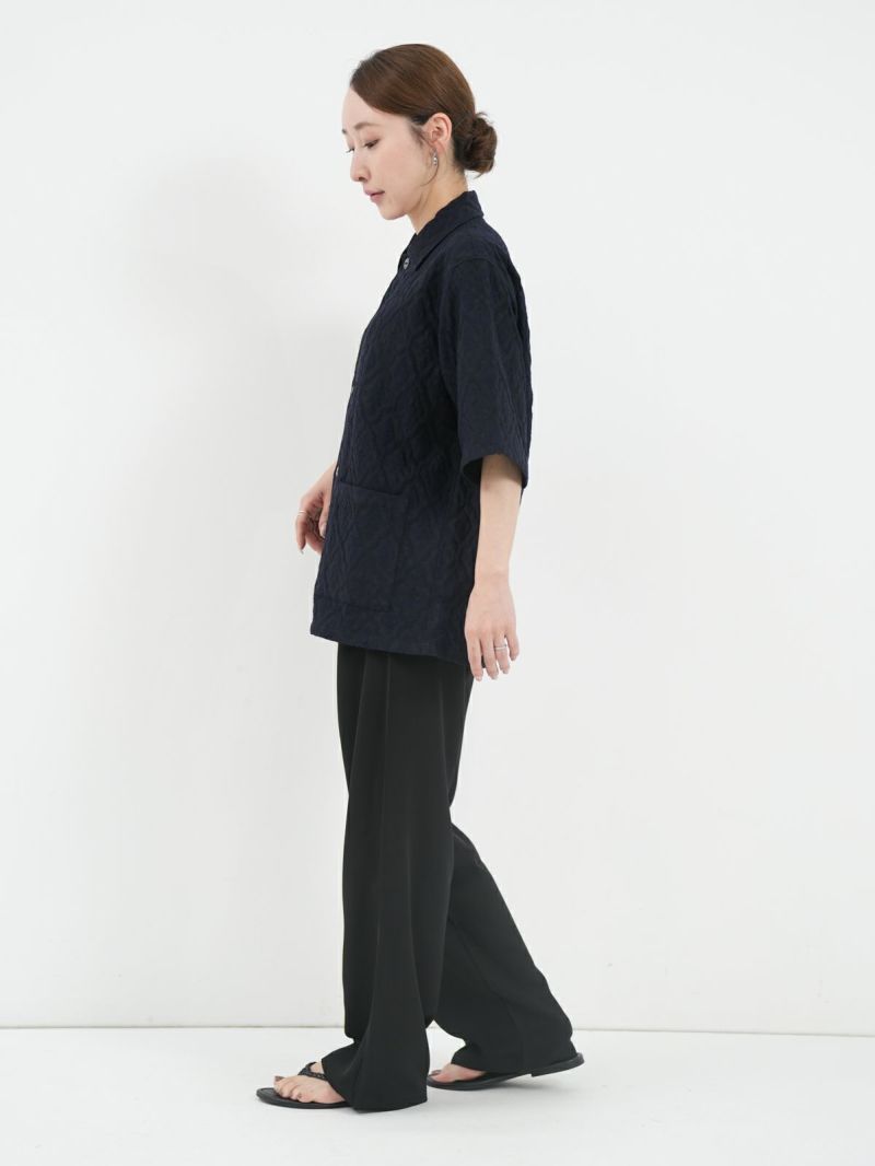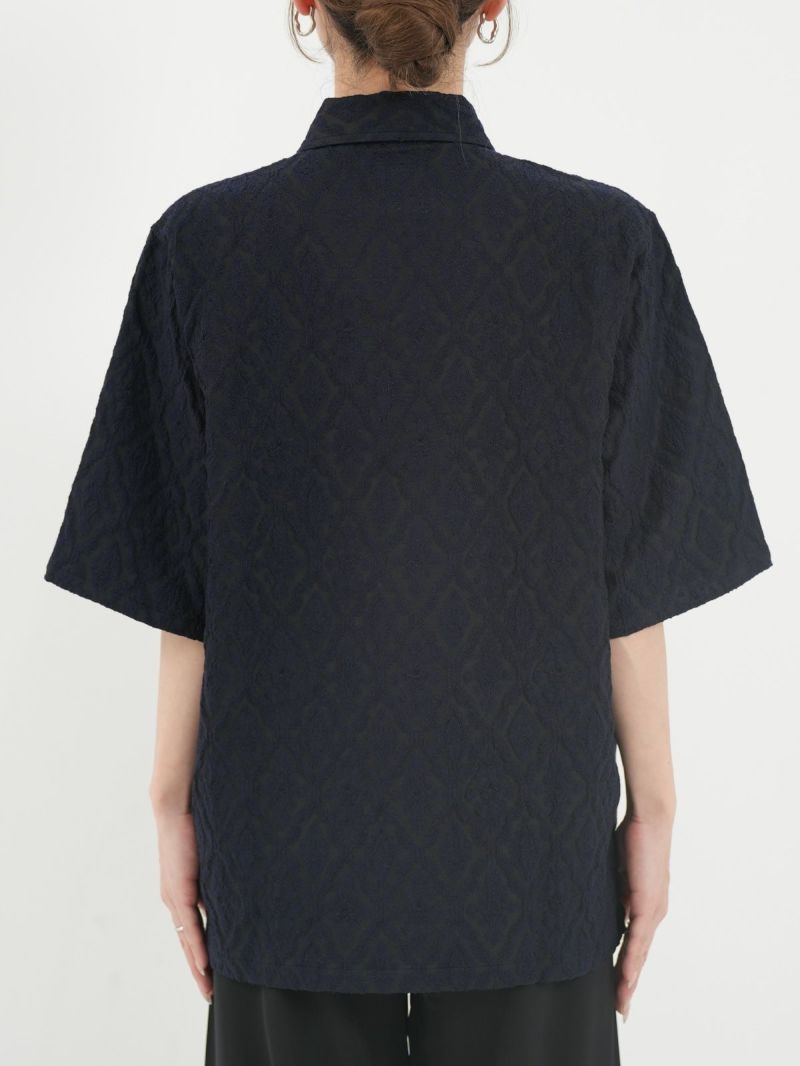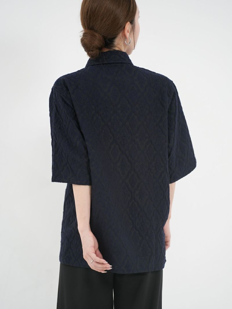 高級感のあるジャガード素材で、シワにもなりにくいです。一枚ではもちろん、インナーを挟んでラフに羽織るコーディネートも抜け感がありオシャレです。