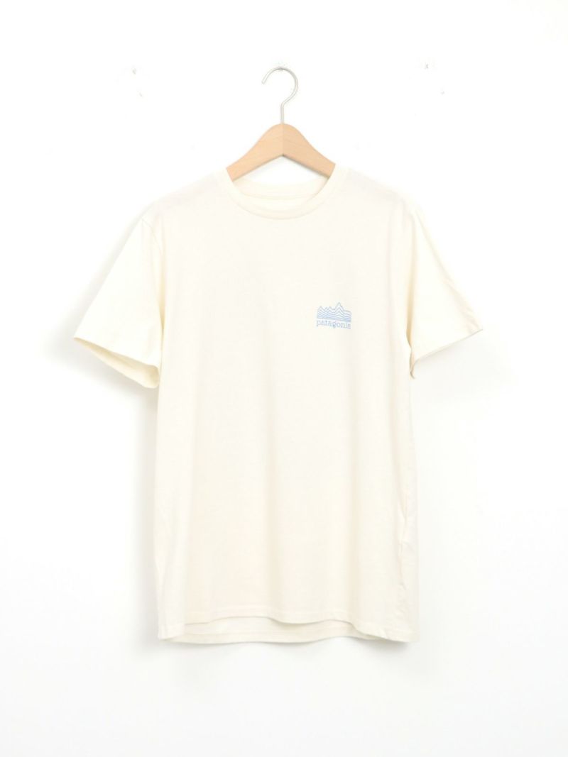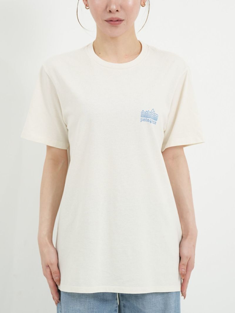 リサイクル素材でつくられたTシャツ。 雲海の上に浮かぶフィッツロイを線だけで表現したシンプルな1枚。ボトムにインしてもそのままでも着用可能なストレートな裾で幅広いコーディネートに馴染みます。工場の従業員にプレミアム賃金が支払われるフェアトレード・サーティファイドの工場で製造されています。