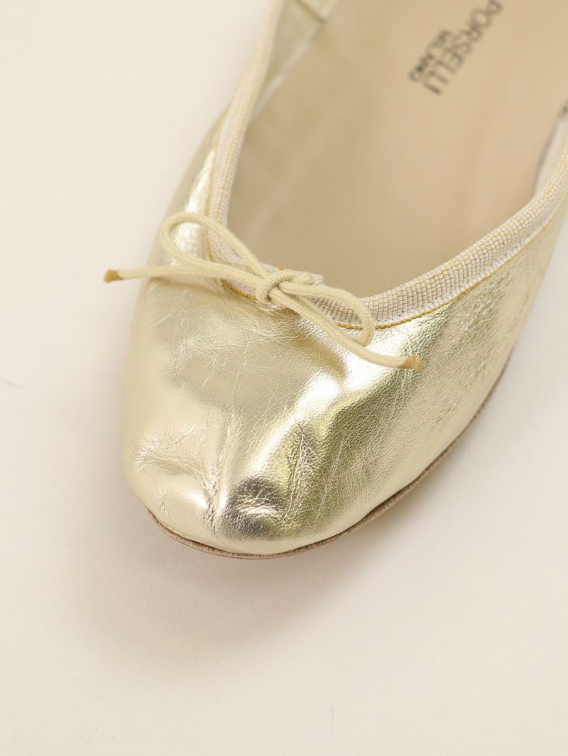 足元に抜け感を演出してくれる、「porselli」定番のバレエシューズ。 柔らかな履き心地が特徴で、足先についているリボンで足に合わせて絞ってお使い頂けます。