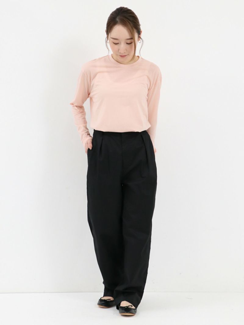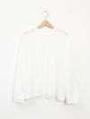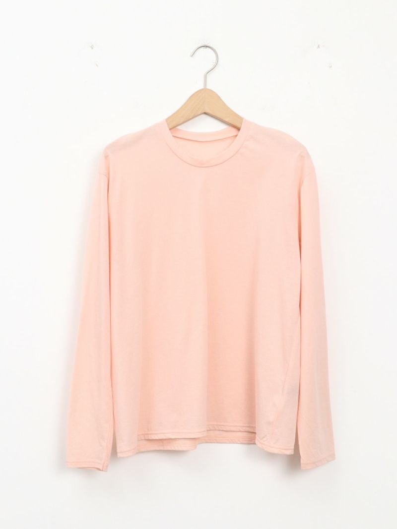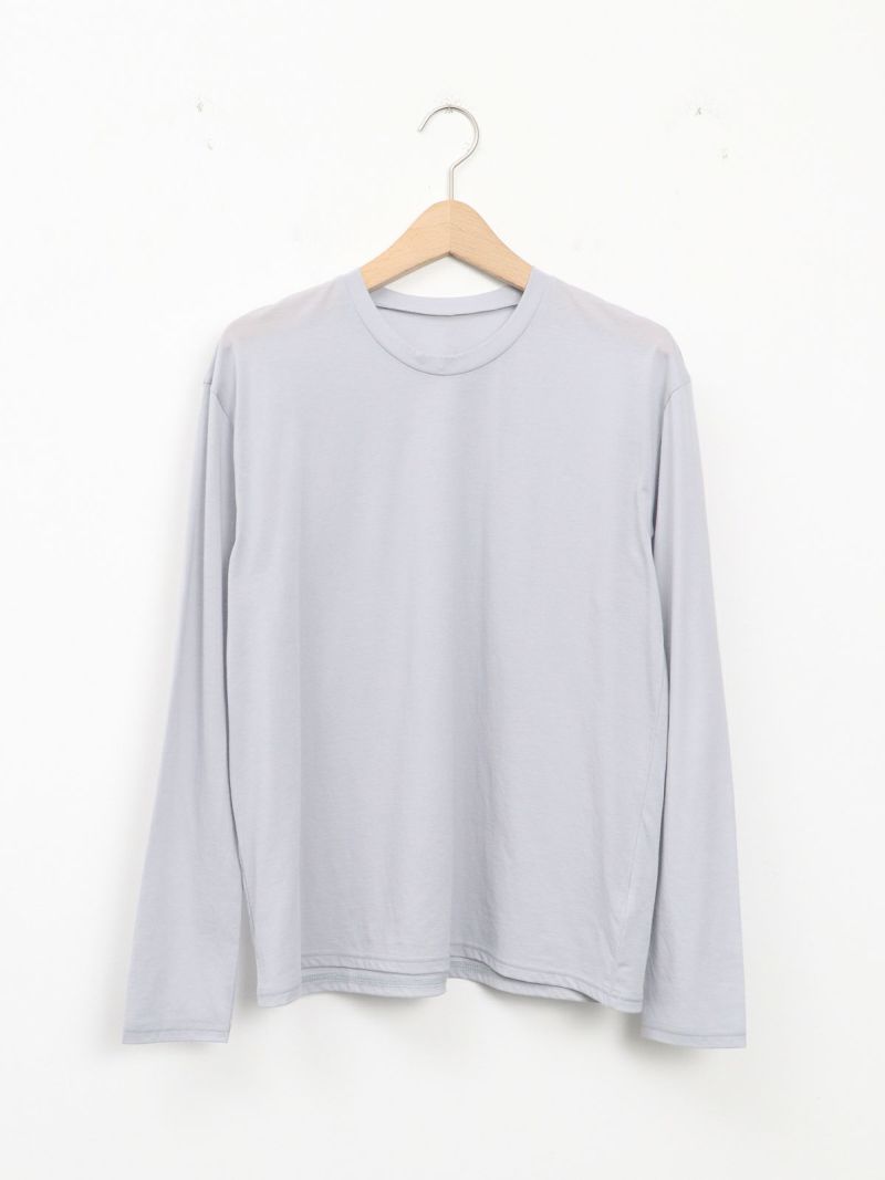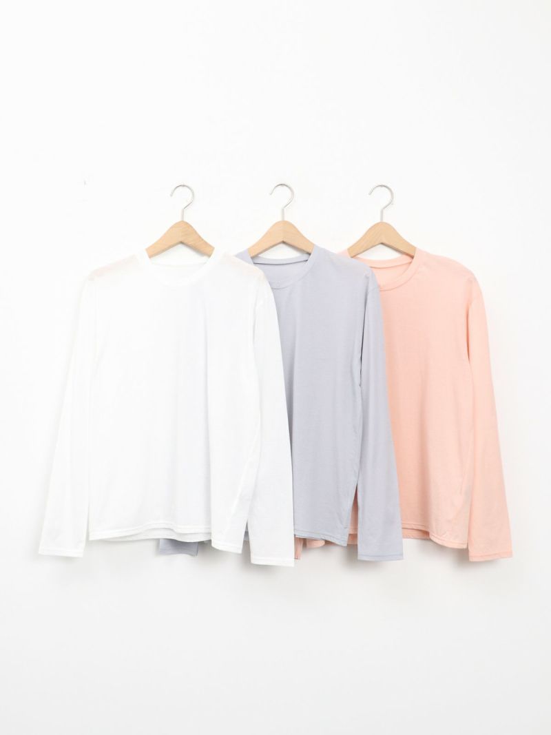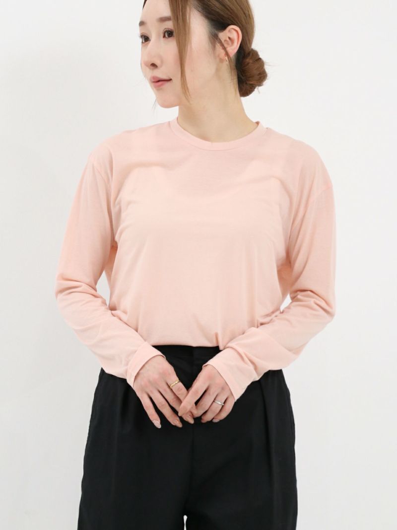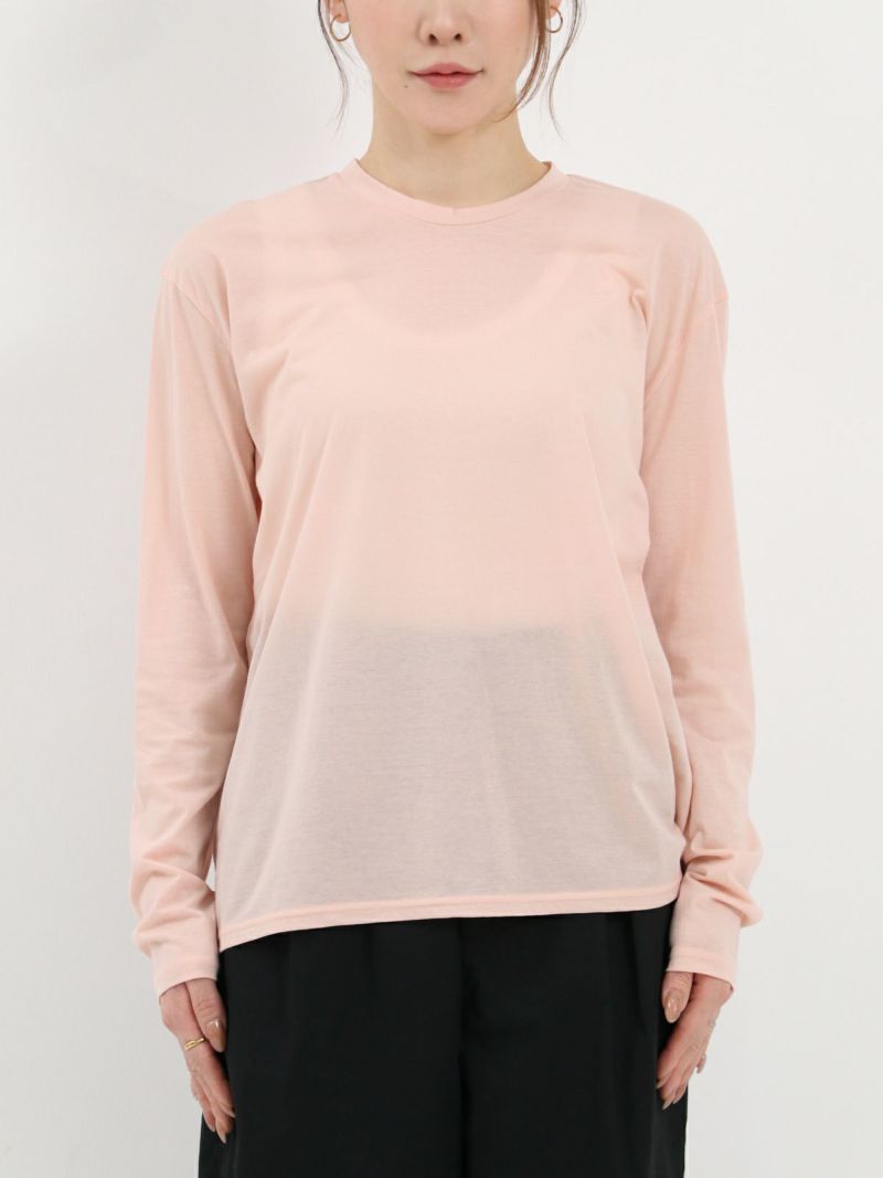 昨年好評だった形を元に首元がクルーネックになりました。程よい透け感があるので、ブラウスやニットの重ね着にも一枚着にも◎重宝する一枚です。