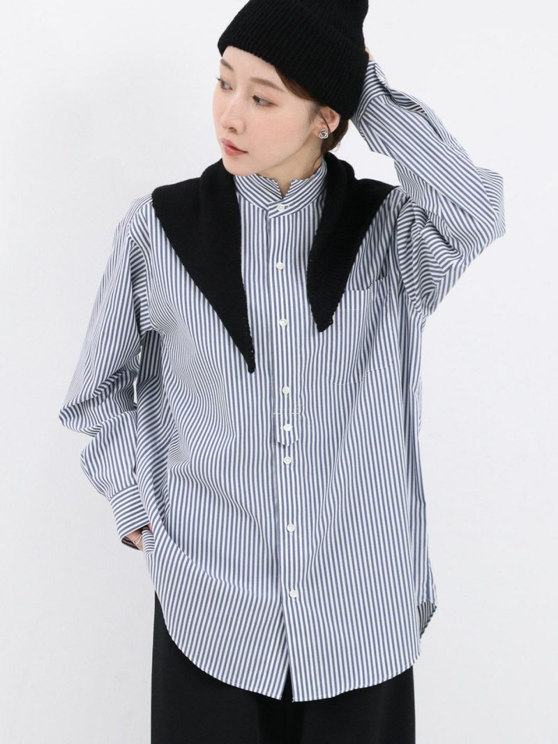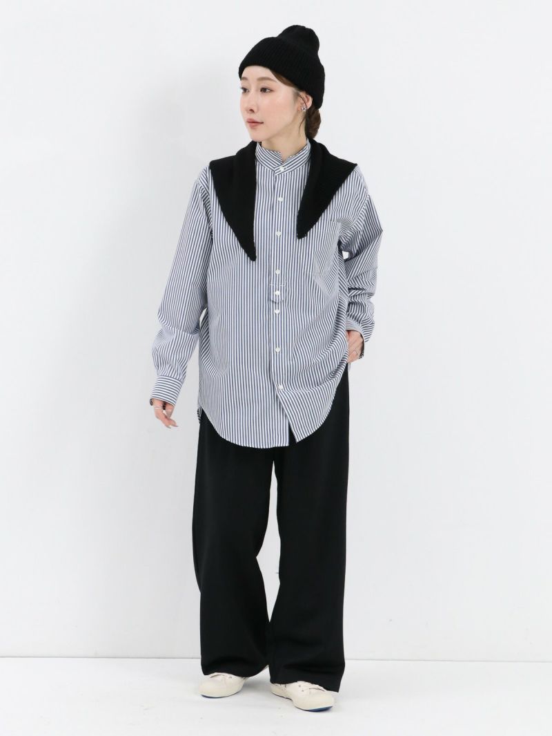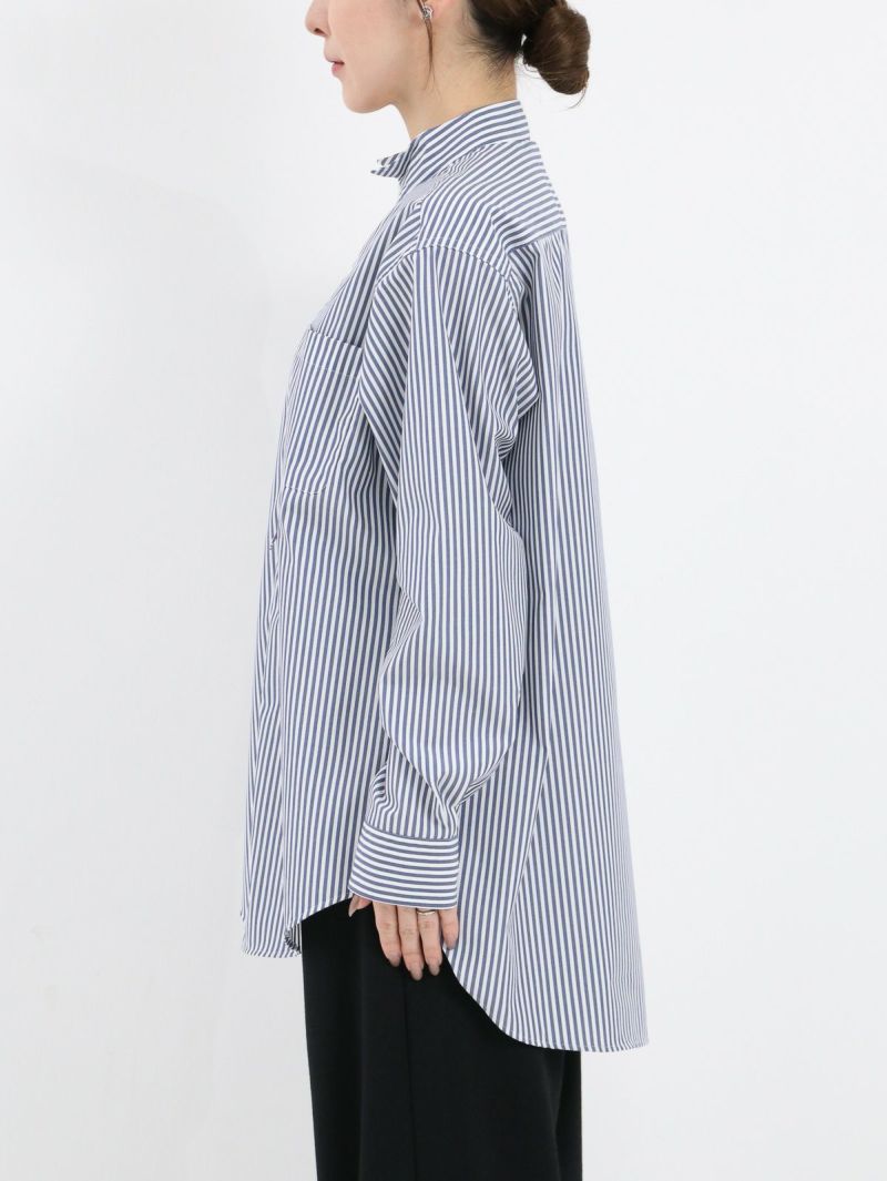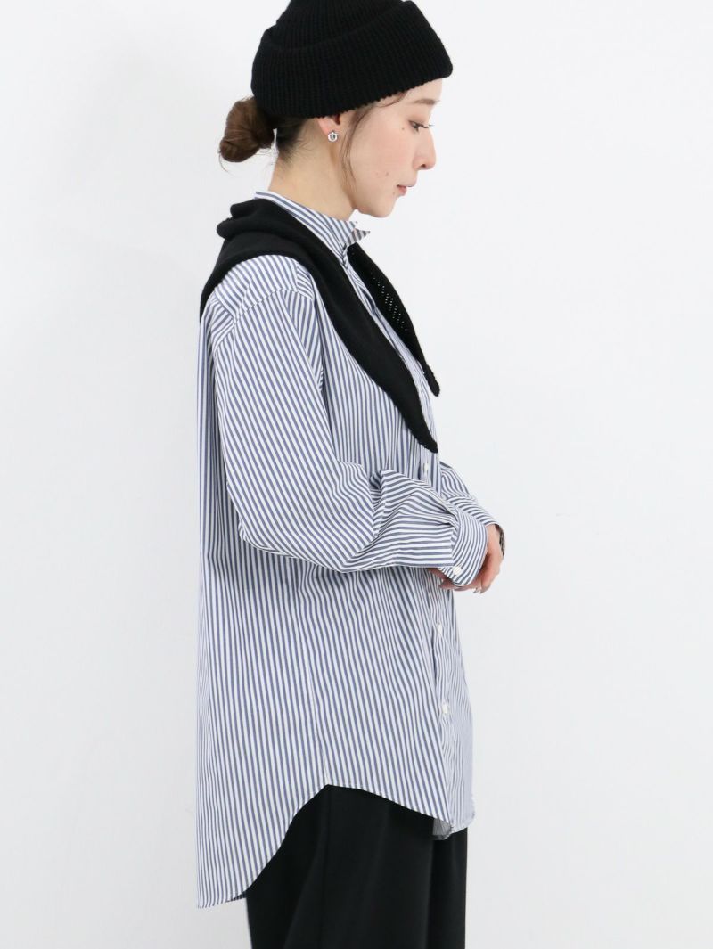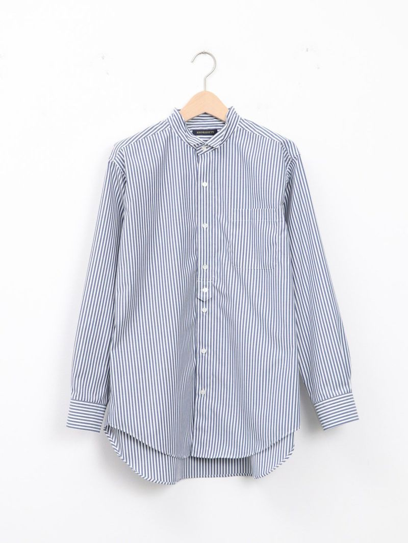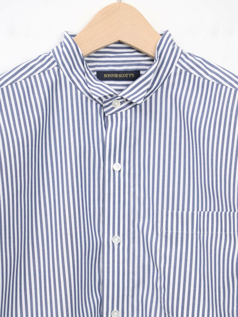 RONNIE SCOTT'S別注、人気のウィングカラーシャツ。 コンパクトなウィングカラーが魅力。1枚で着るのはもちろん、ニットやジャケットのインナーにもおすすめです。太めのストライプが着こなしのアクセントになります。