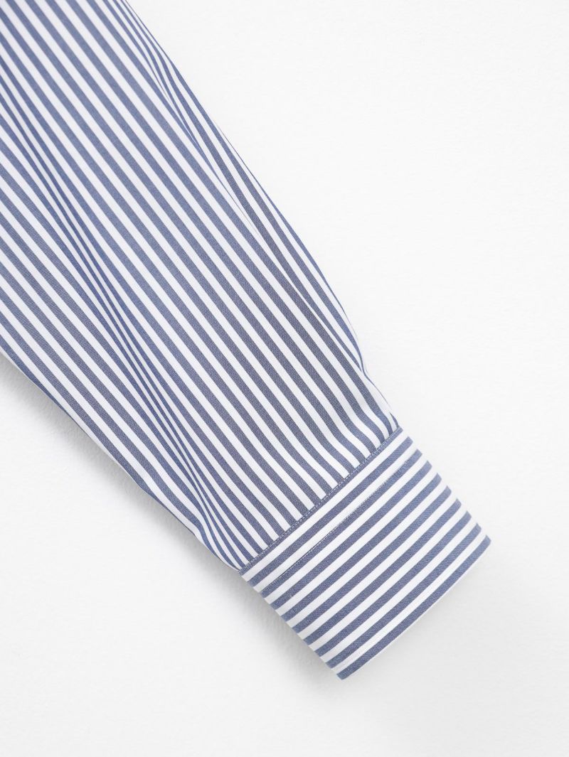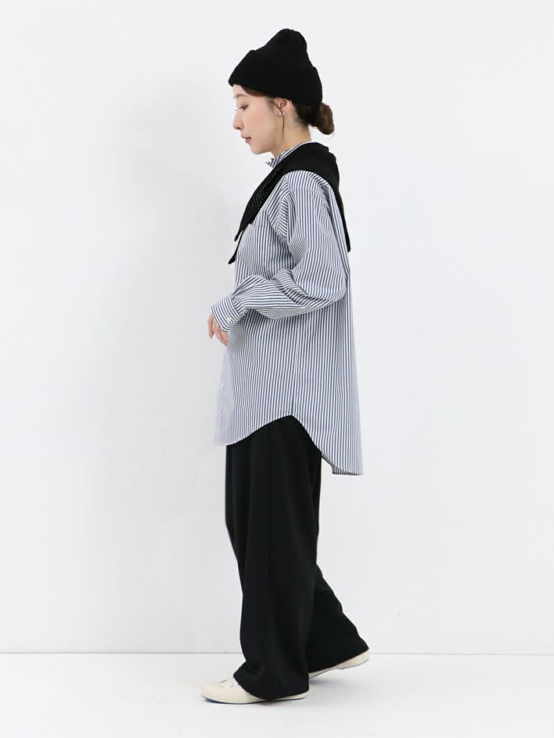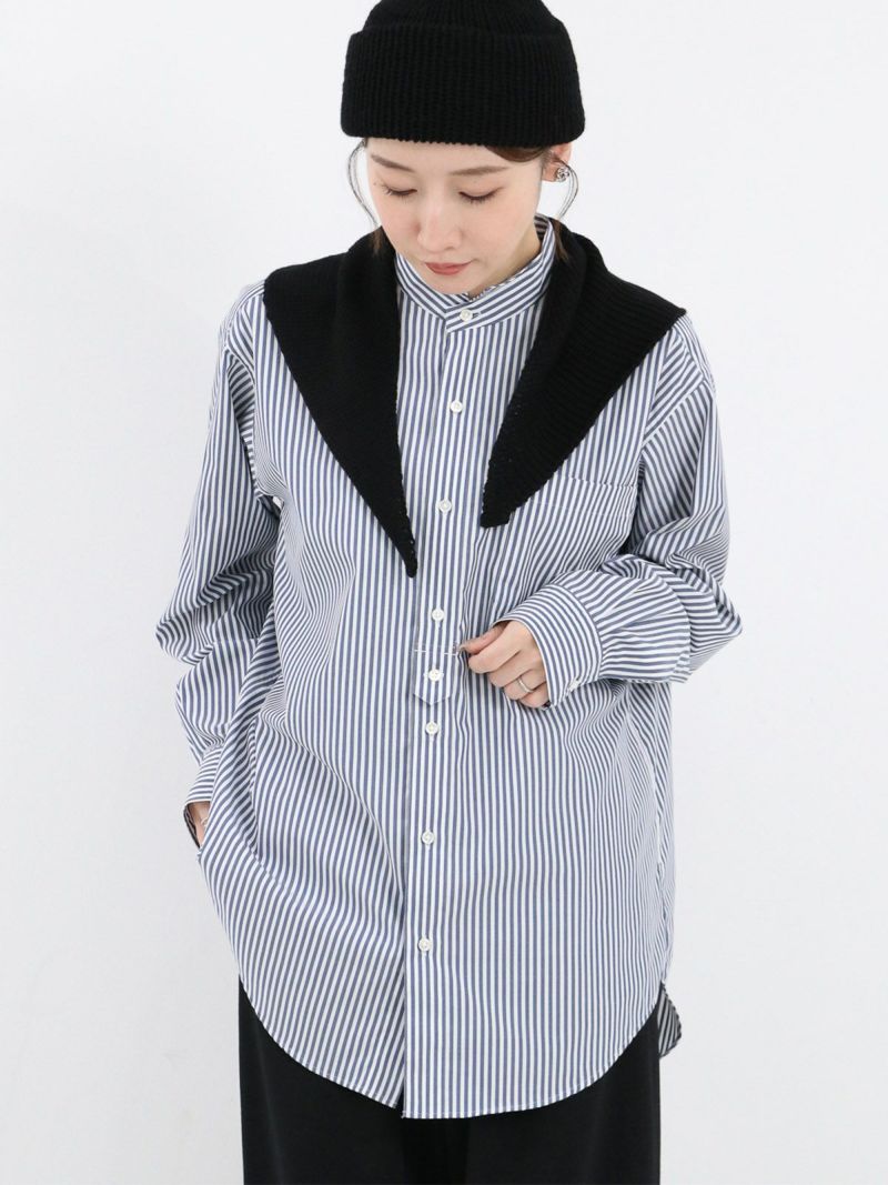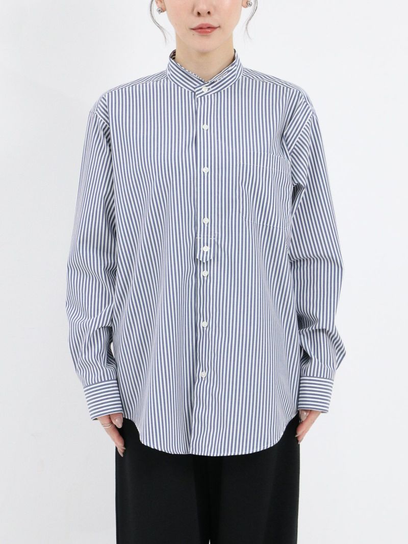 RONNIE SCOTT'S別注、人気のウィングカラーシャツ。 コンパクトなウィングカラーが魅力。1枚で着るのはもちろん、ニットやジャケットのインナーにもおすすめです。太めのストライプが着こなしのアクセントになります。