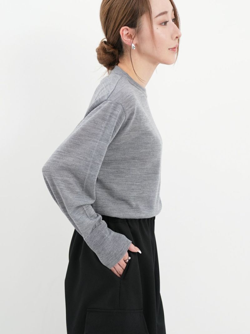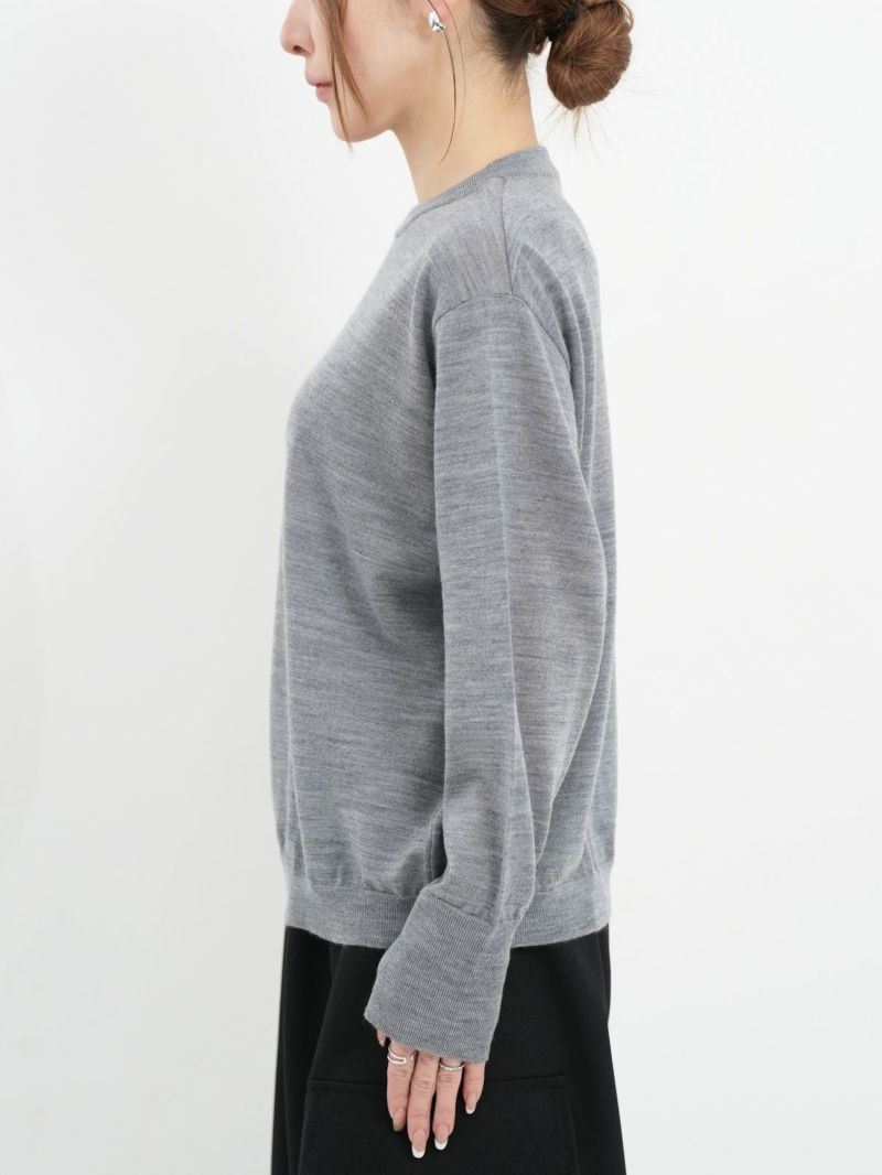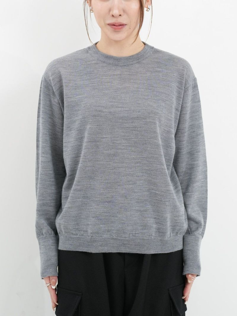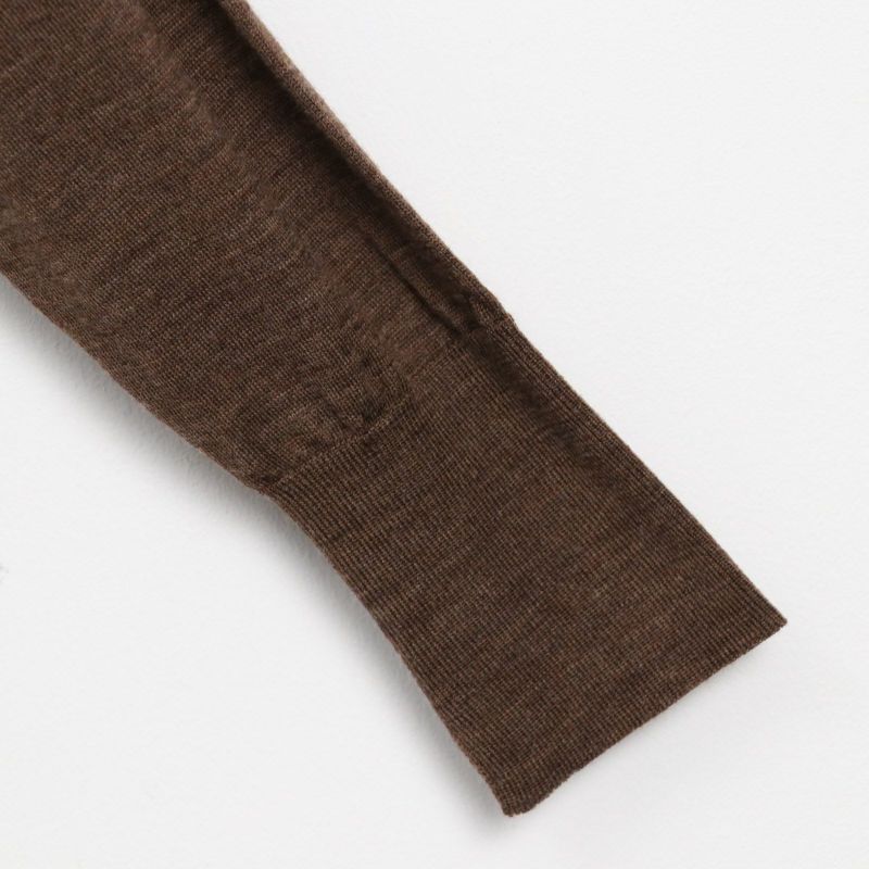 光沢と柔らかい膨らみ感に優れたロニースコッツオリジナルハイゲージニット。 時代に左右されないベーシックな形は長年愛用出来る心強いアイテム。薄手で暖かい為、一枚ではもちろんインナーでもごわつかず着用頂けます。