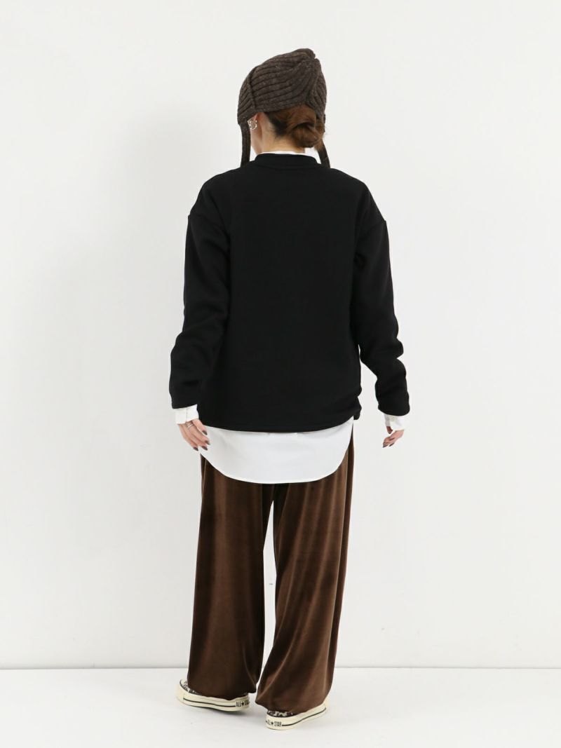 裏面を特殊な方法で編むことでベロアのような裏起毛を施した、保温性に優れた生地「BOMBER HEAT」仕様。滑らかな肌当たりと心地よい暖かさ、さらにストレッチ性を兼ね備えており、着心地バツグンです。毎日着たくなる、リラクシングなアイテムです。