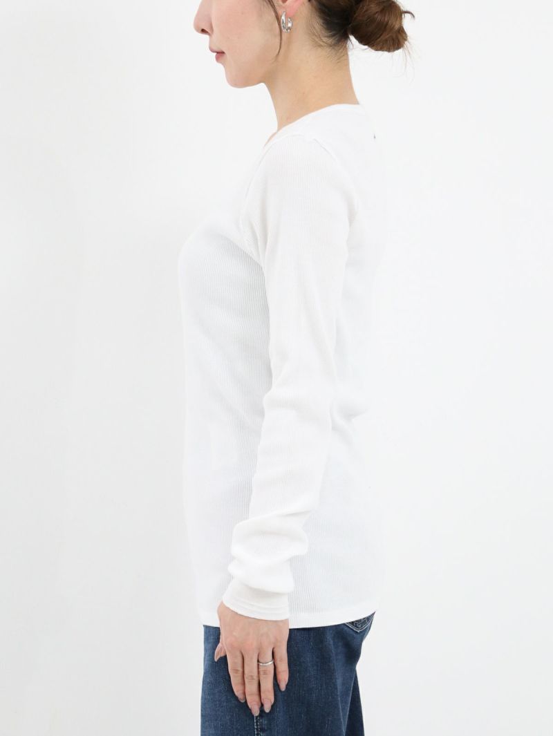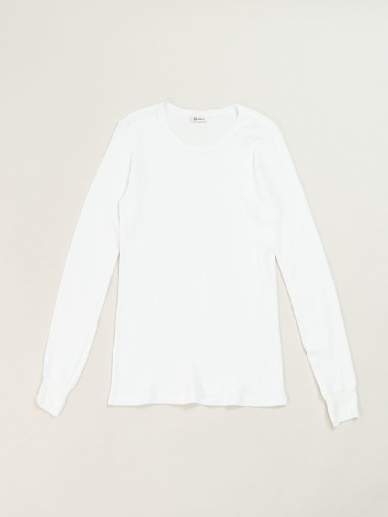 ドイツの老舗ブランドドSCHIESSERのリブTシャツ。 白のTシャツは季節問わずに手に取るアイテム。春は重ね着として、夏は1枚で、秋はベストのインナーに。冬はニットやスウェットの裾や首元からのチラ見え具合が理想的。1枚持っておくと重宝間違いなしのTシャツです。