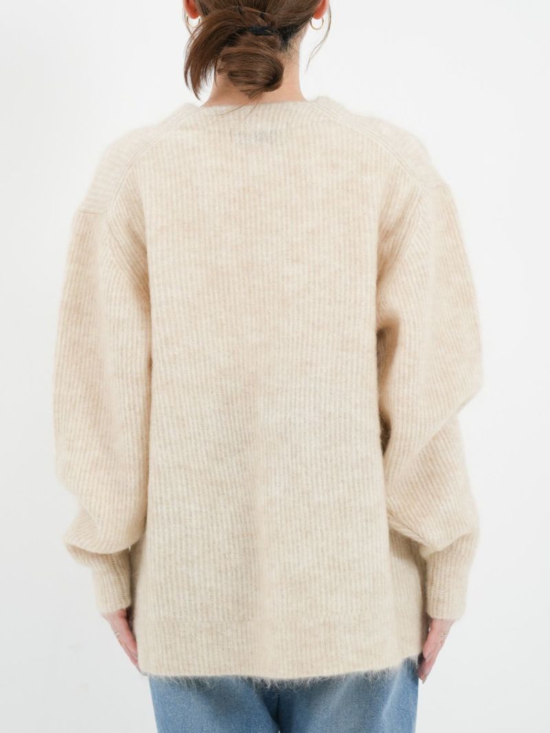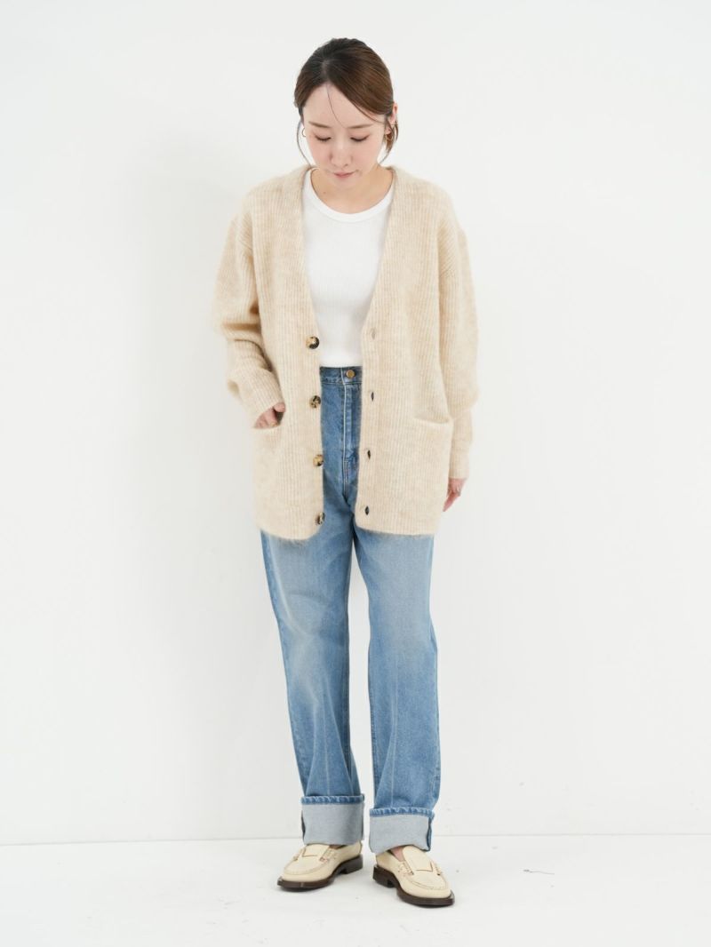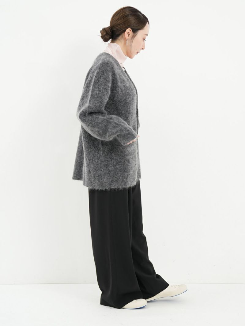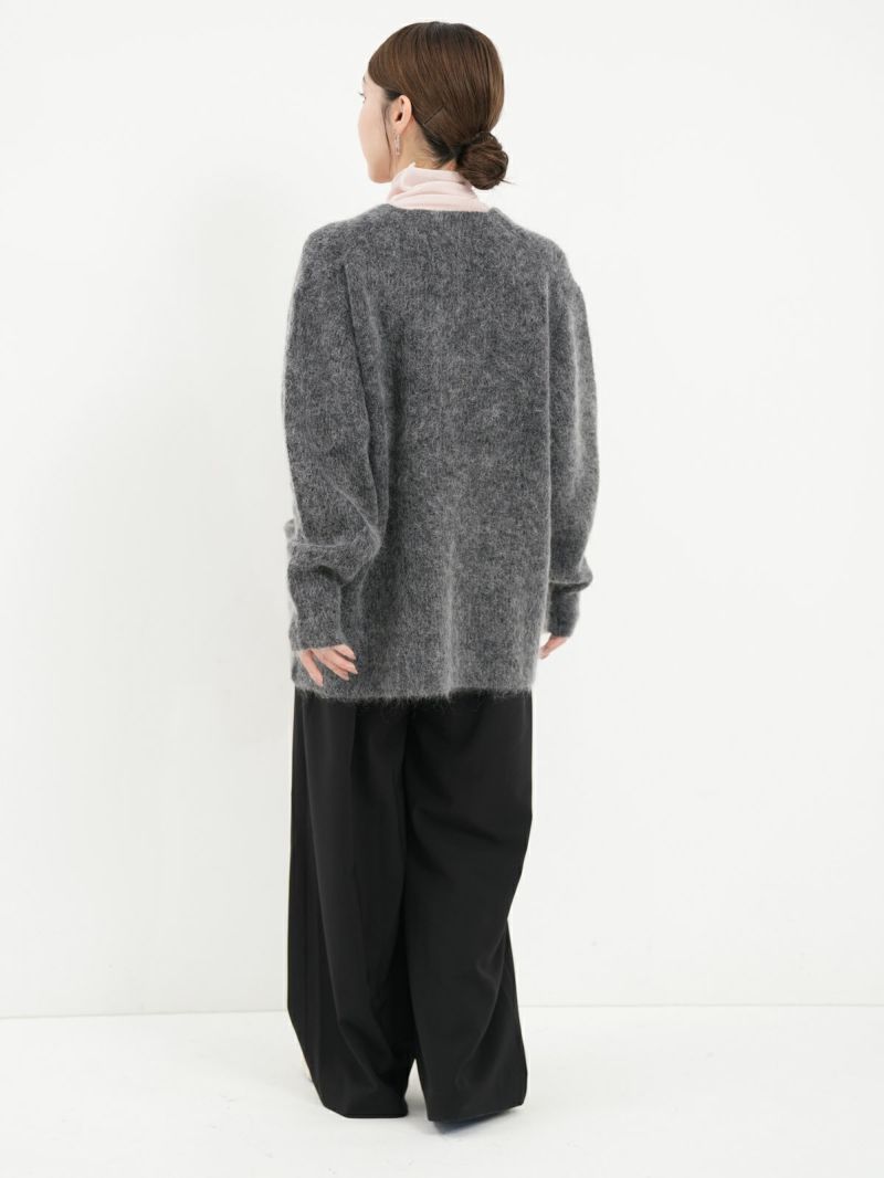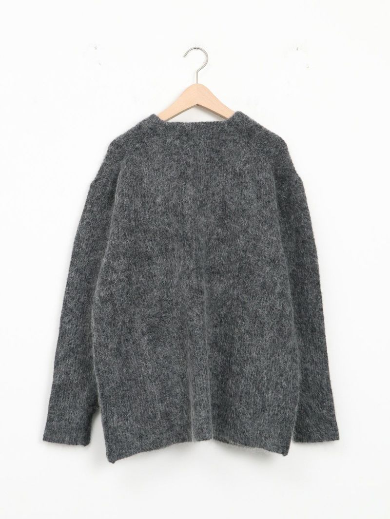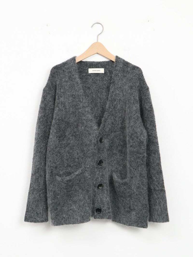 SAYAKA DAVISのセグニチャー、モヘアシリーズの定番Vネックカーディガン。 ジェンダーレスで着られるよう、オーバーサイズで裾幅をゆったりとったボクシーなシルエットに。軽くて柔らかく、温かいこの素材は、ピリングも起こしにくく、着心地の良さからつい手に取ってしまうような一着です。一枚でも、シャツを重ねても、様々なスタイリングに馴染むエブリデイピースです。