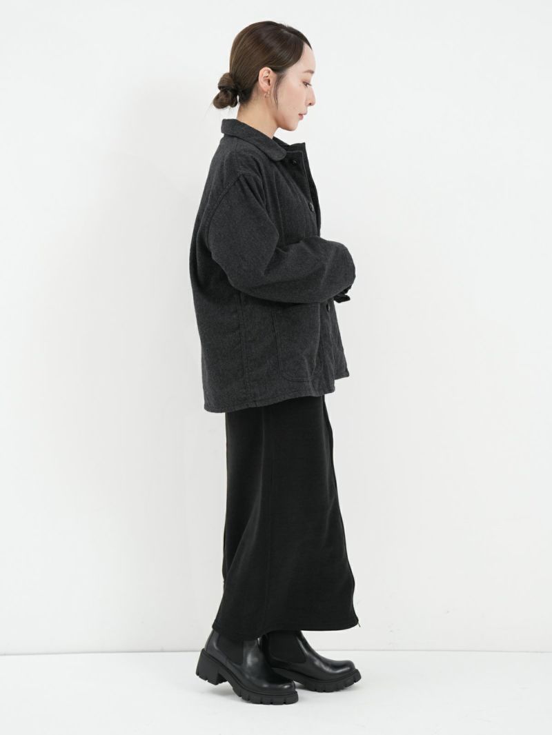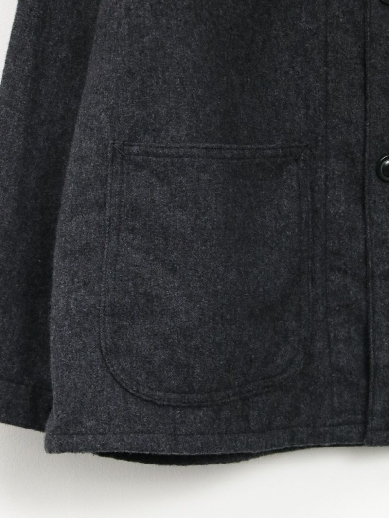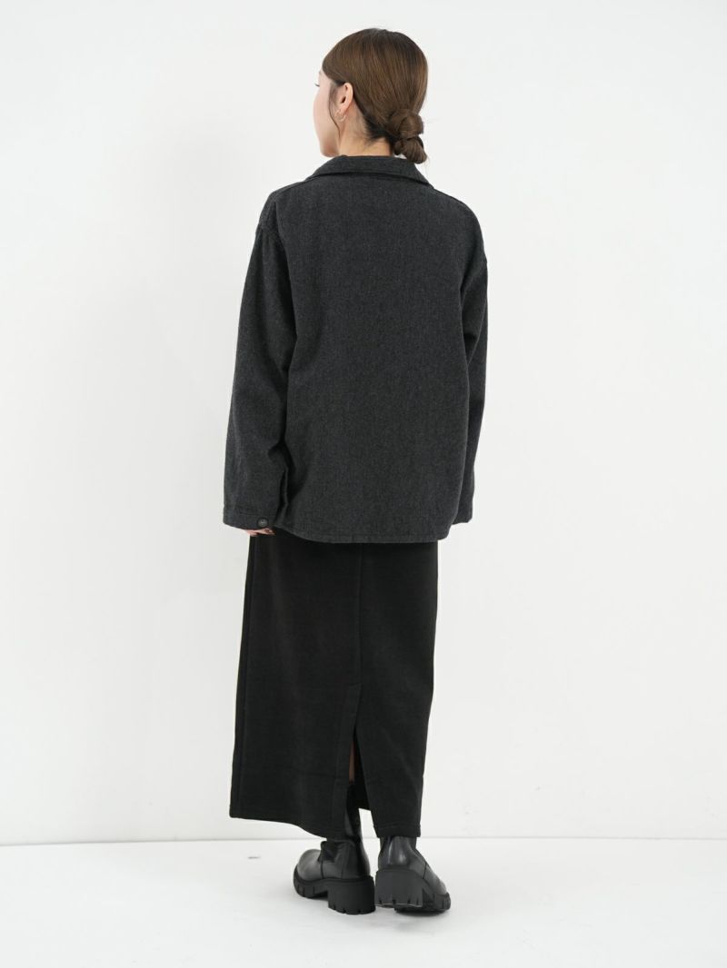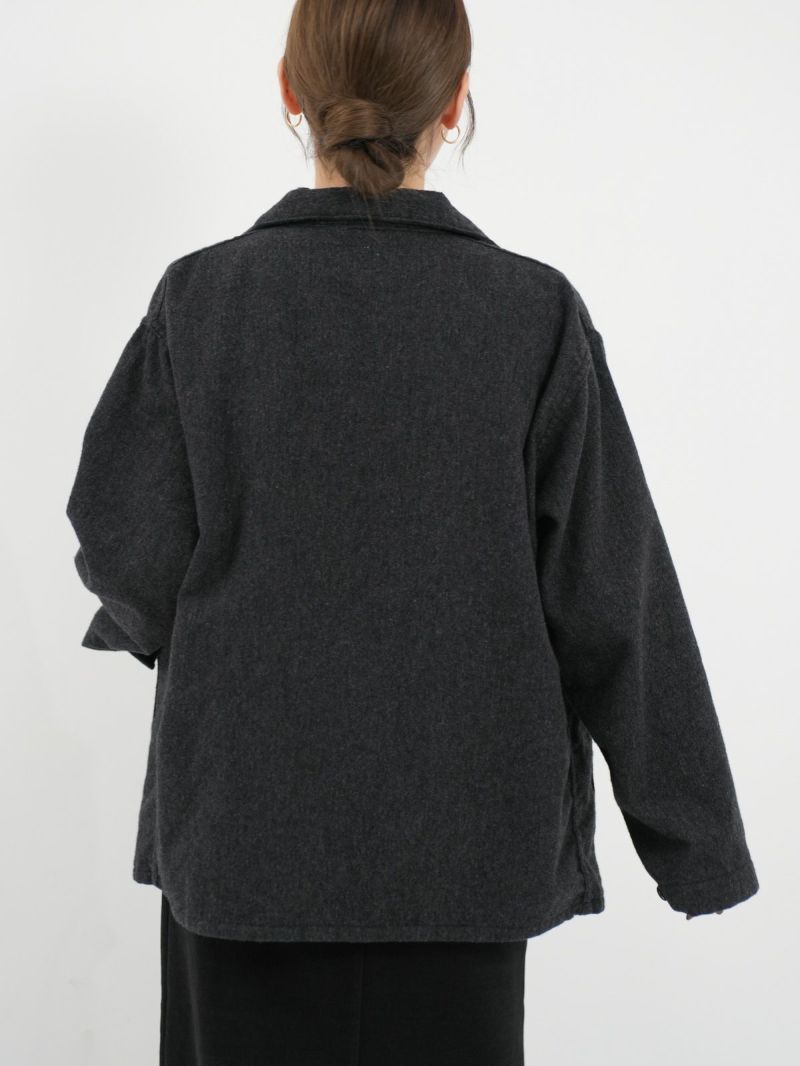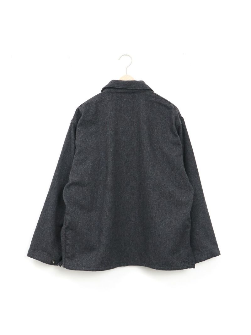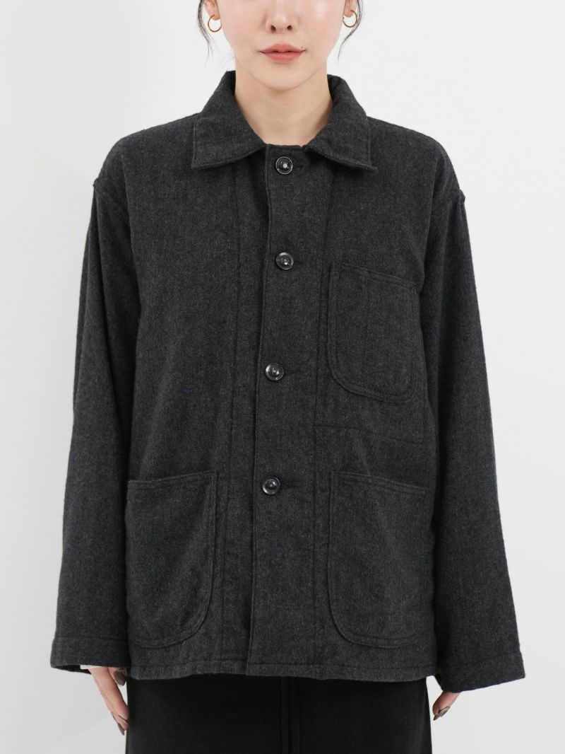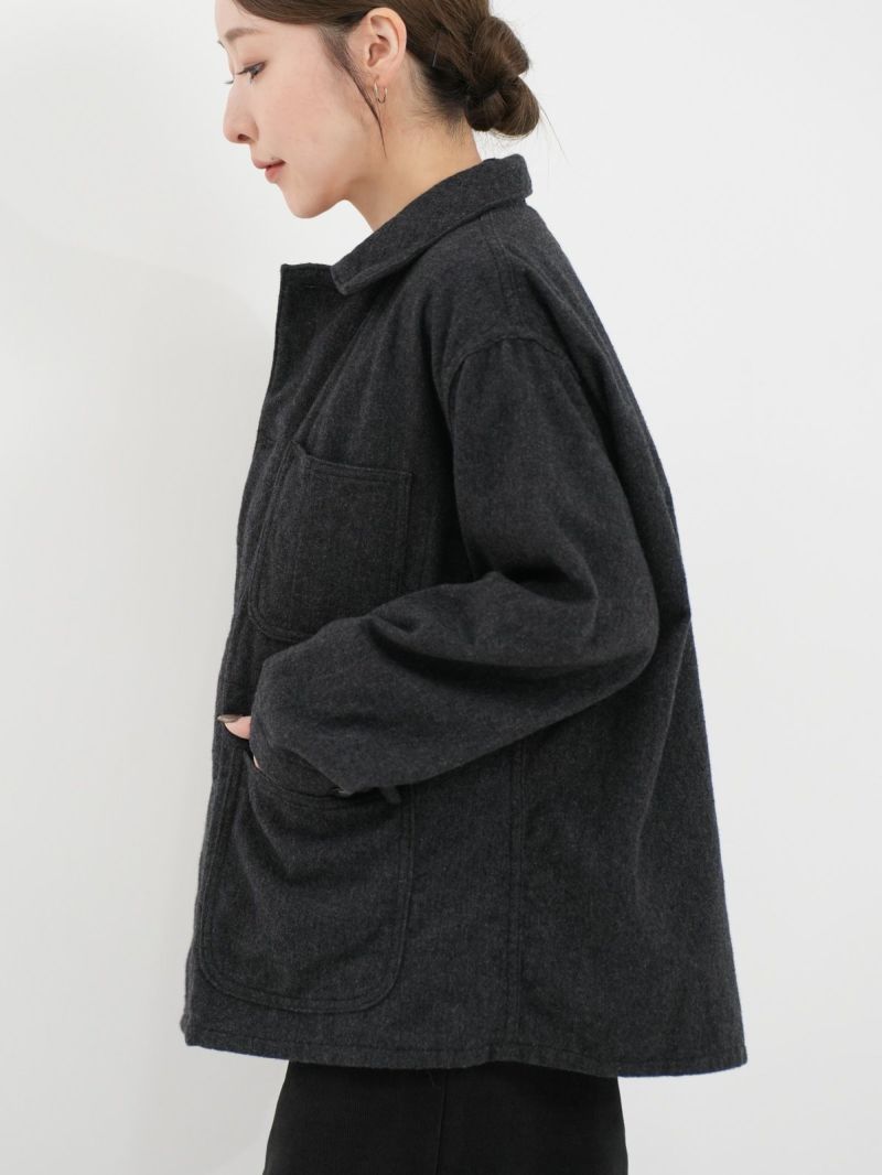 3つのパッチポケット、リベット留めのメタルボタン、そしてゆったりとしたフィット感が特徴的です。使い込むほどに増す風合いの変化も魅力で、スタイリングのメインにジャケットとしてはもちろんコートなどにインナーにもおすすめ、幅広シーズンの着用に活躍してくれます。
