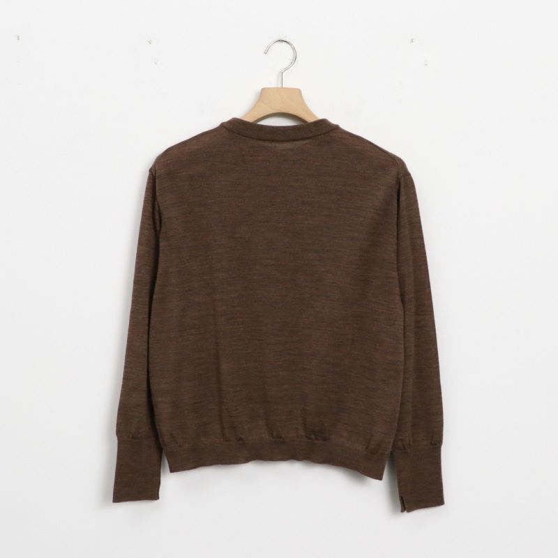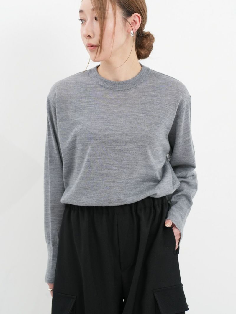 光沢と柔らかい膨らみ感に優れたロニースコッツオリジナルハイゲージニット。 時代に左右されないベーシックな形は長年愛用出来る心強いアイテム。薄手で暖かい為、一枚ではもちろんインナーでもごわつかず着用頂けます。
