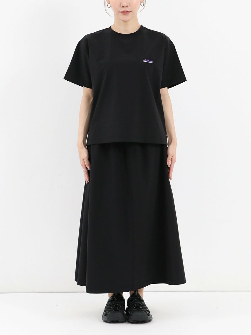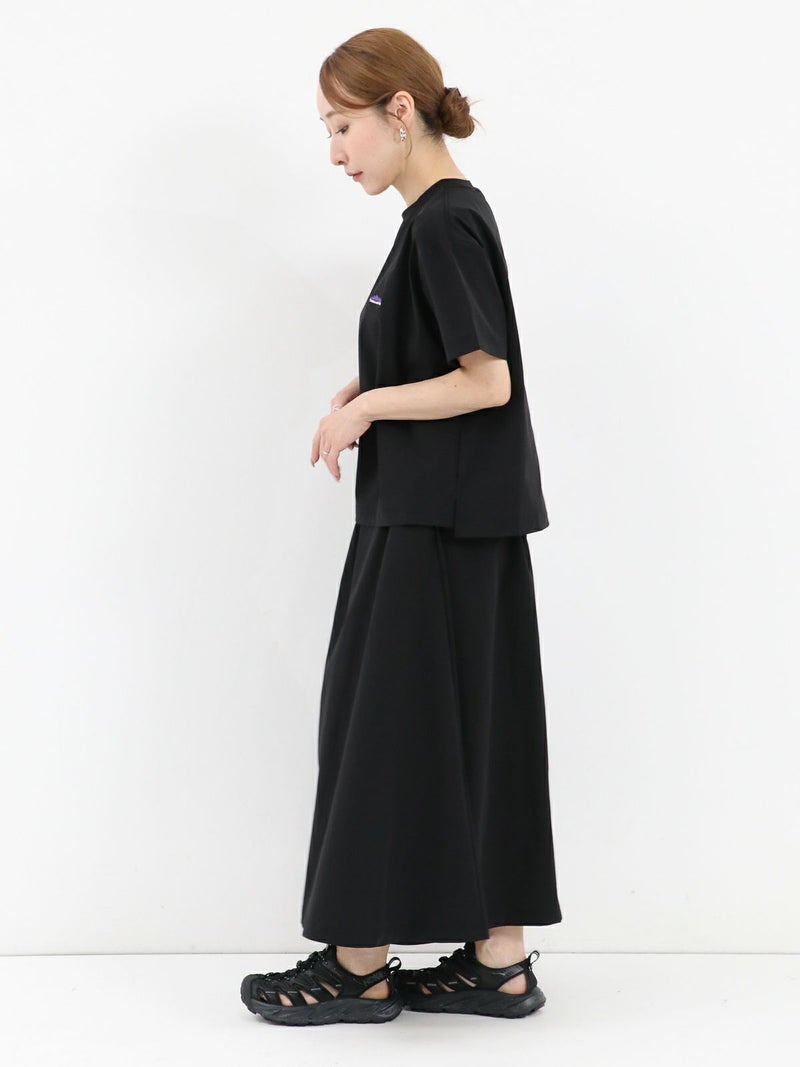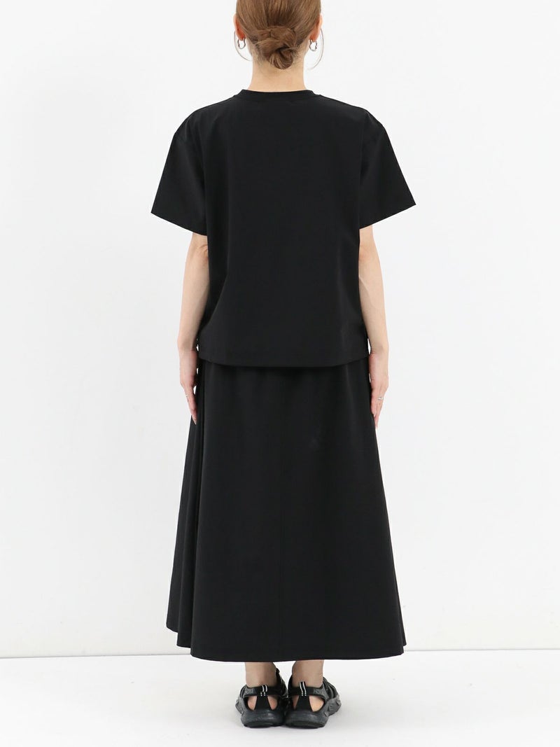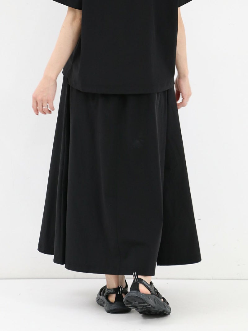 軽量かつしなやかなストレッチナイロンを使用。速乾性にも優れており、暑い季節も快適な着心地をキープしてくれます。Tシャツは身幅広めのリラックスシルエット。両サイド裾にスリットをあしらっており、後着丈が長いデザインになっています。スカートのウエストはゴム×ストリングで調節できます。さらにウェアと同素材でつくられたバッグ付き。セットアップをまとめて収納できるのでコンパクトに持ち運びできます。タウンユースはもちろん、アウトドア、レジャーシーンでも活躍します。セットアップでの着用はもちろん、それぞれ単品でのコーディネートもおすすめです。