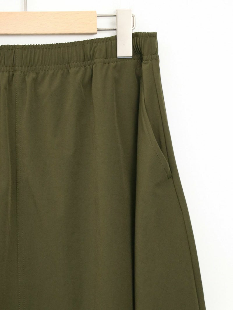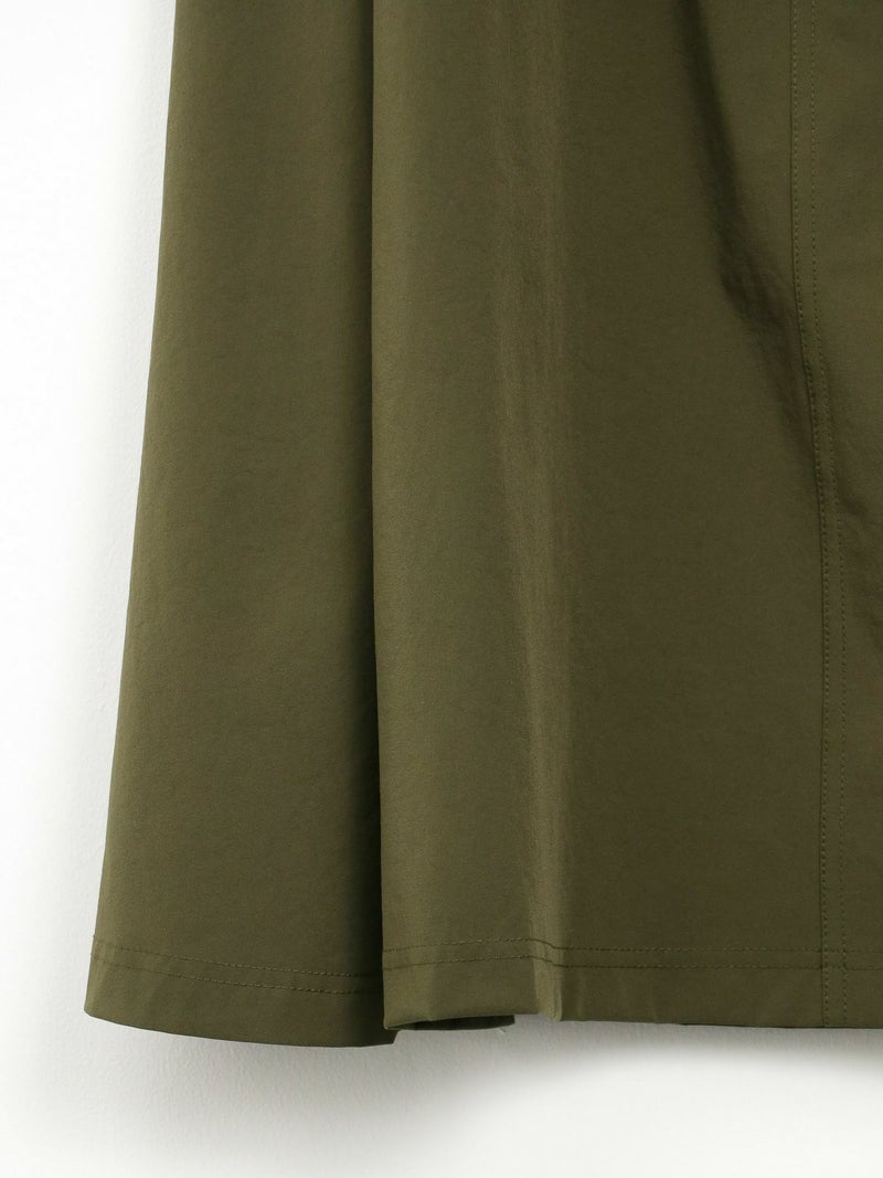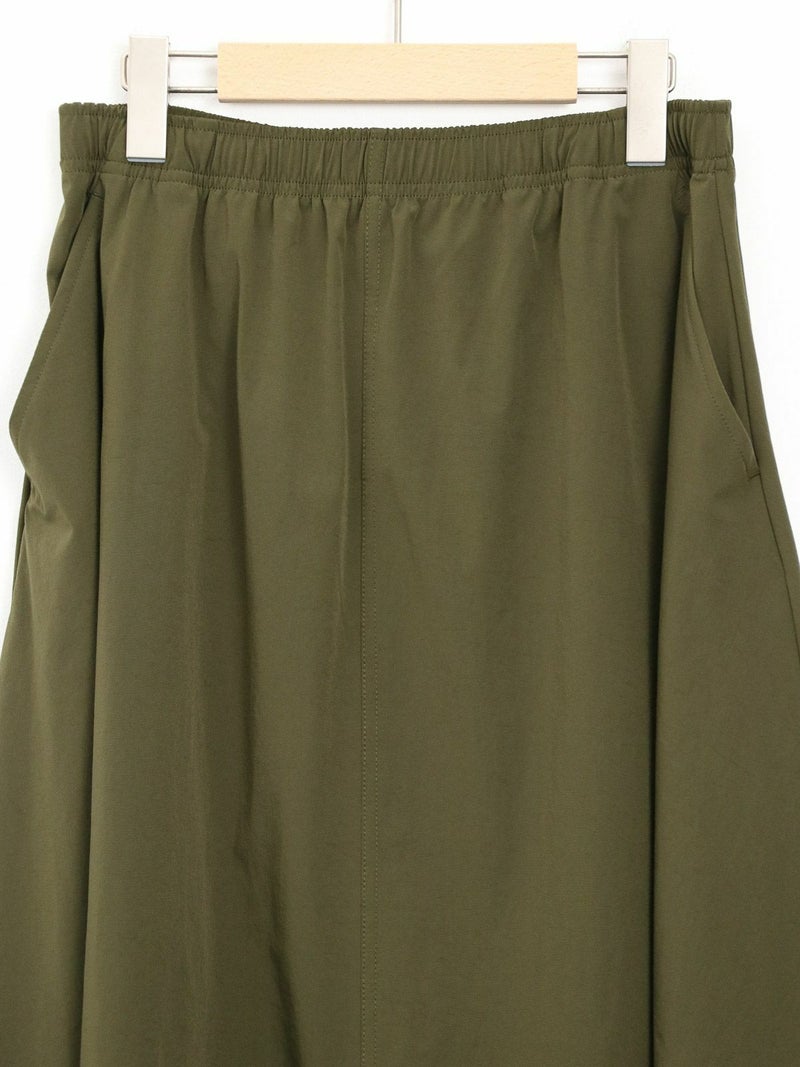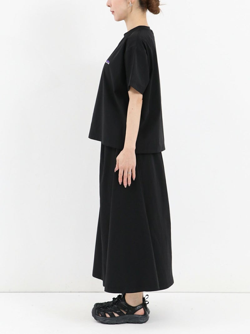 軽量かつしなやかなストレッチナイロンを使用。速乾性にも優れており、暑い季節も快適な着心地をキープしてくれます。Tシャツは身幅広めのリラックスシルエット。両サイド裾にスリットをあしらっており、後着丈が長いデザインになっています。スカートのウエストはゴム×ストリングで調節できます。さらにウェアと同素材でつくられたバッグ付き。セットアップをまとめて収納できるのでコンパクトに持ち運びできます。タウンユースはもちろん、アウトドア、レジャーシーンでも活躍します。セットアップでの着用はもちろん、それぞれ単品でのコーディネートもおすすめです。