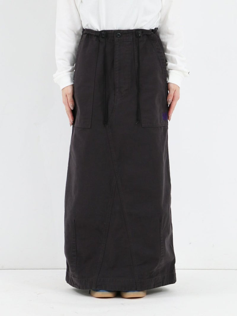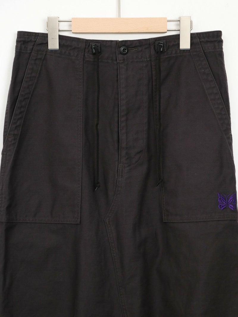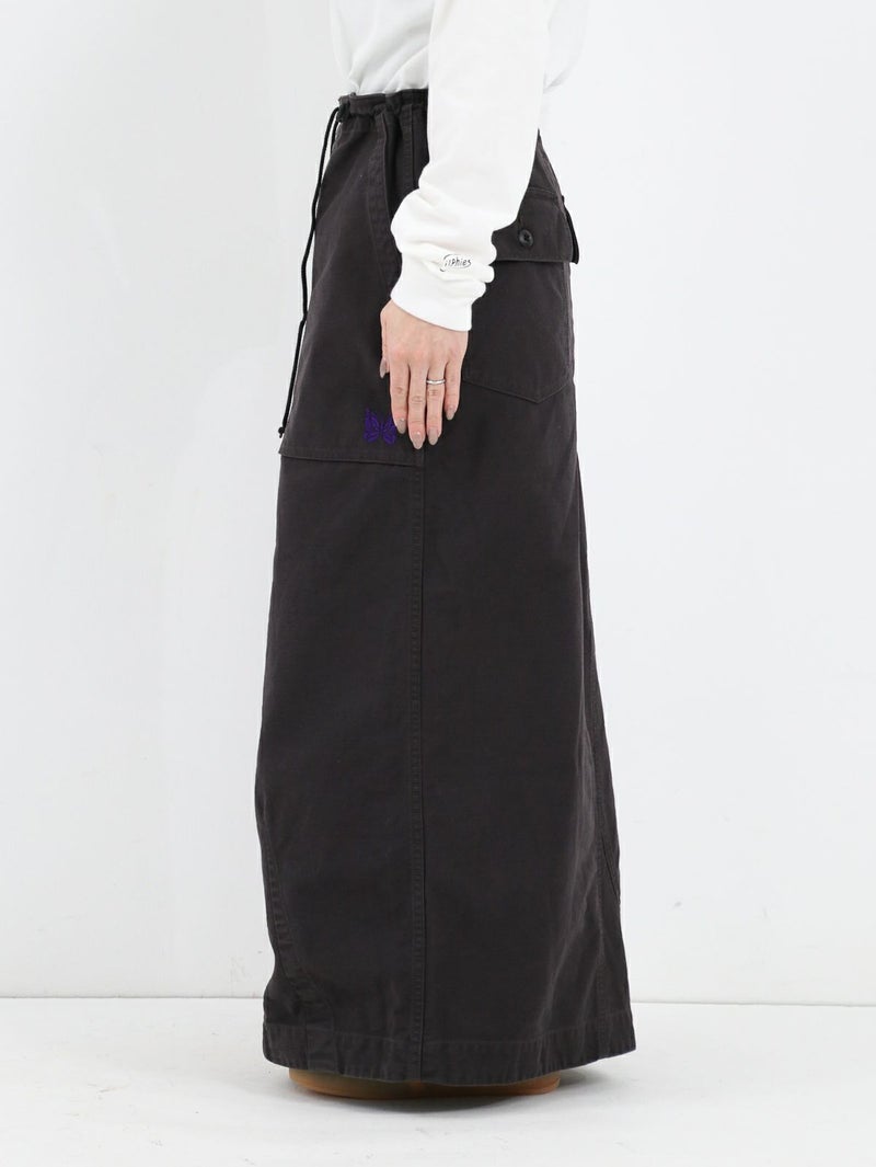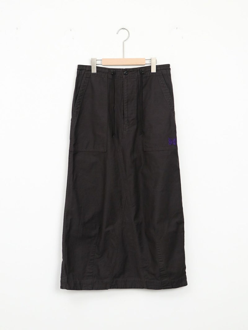 〈NEEDLES〉定番のドローコードウエスト仕様のリラックス感が魅力のファティーグスカート。シンプル&ベーシックなデザインで、シーズンや時代を問わず幅広く活躍する万能アイテムです。
