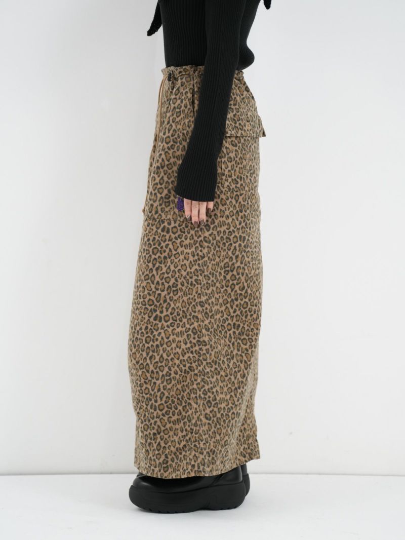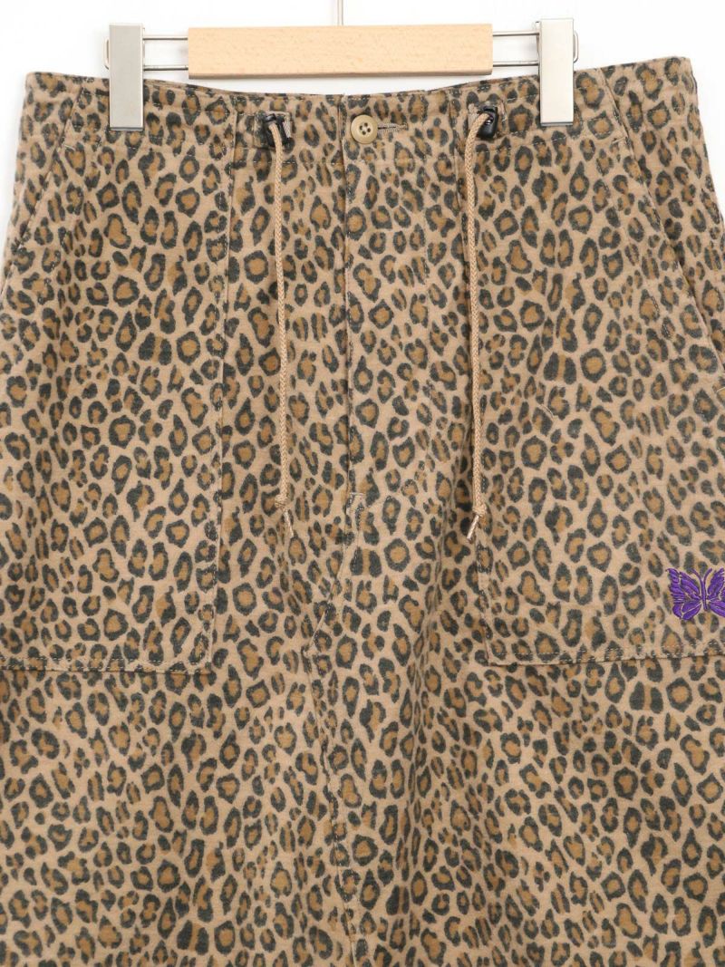 〈NEEDLES〉定番のドローコードウエスト仕様のリラックス感が魅力のファティーグスカート。 シンプル&ベーシックなデザインで、シーズンや時代を問わず幅広く活躍する万能アイテムです。個性的なレオパード柄のファブリックは、ブラッシュド加工により肌触りが良く、秋冬らしい温かみを感じる一着です。