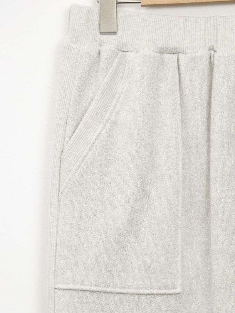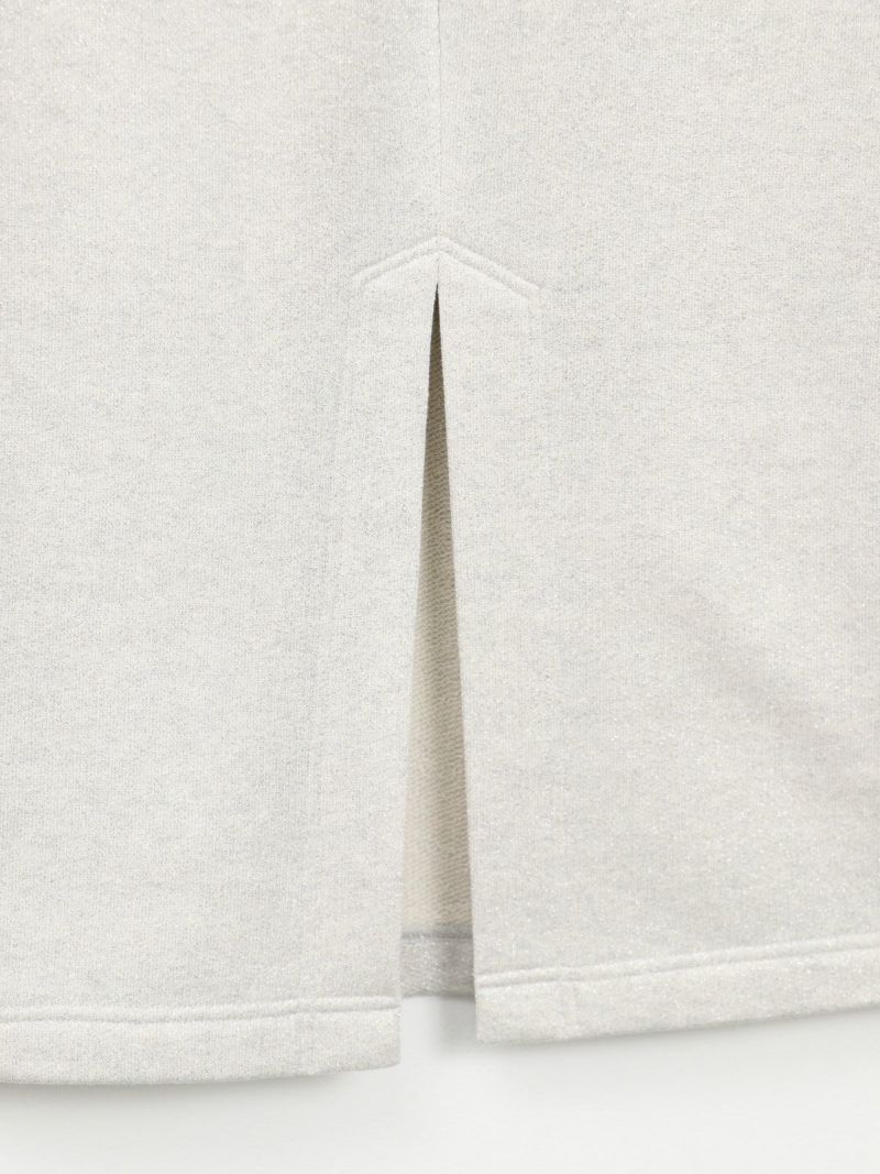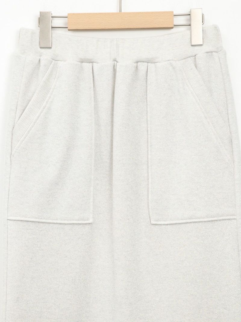 キラキラと優しいラメ裏毛のスカート。 広がりすぎないストレートシルエットで、サイドに入ったリブと大きなポケットがアクセントになります。デザイントップスやシャツとのコーディネートにオススメです。