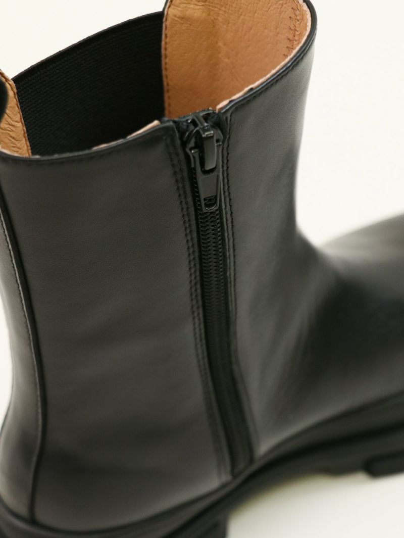 シックな雰囲気を邪魔しないようにデザインされているタンクソールは、安定感もあり長時間歩く際やお出かけにもピッタリの一足です。細身のアッパーに、先端のスクエアトゥデザインで存在感を出しつつもキレイでスマートなシルエットに。ファスナー付きで楽に着脱でき、本革を使用しているので傷みにくく、長く愛用していただけます。