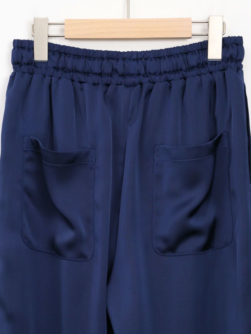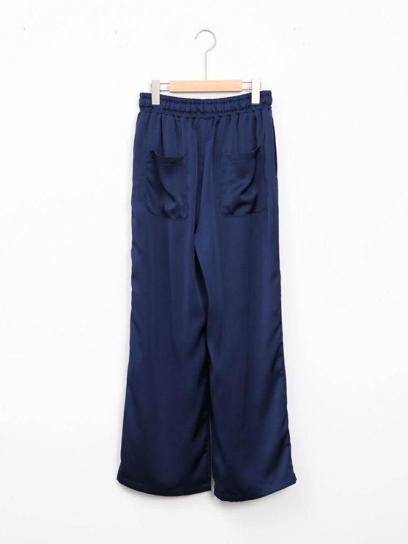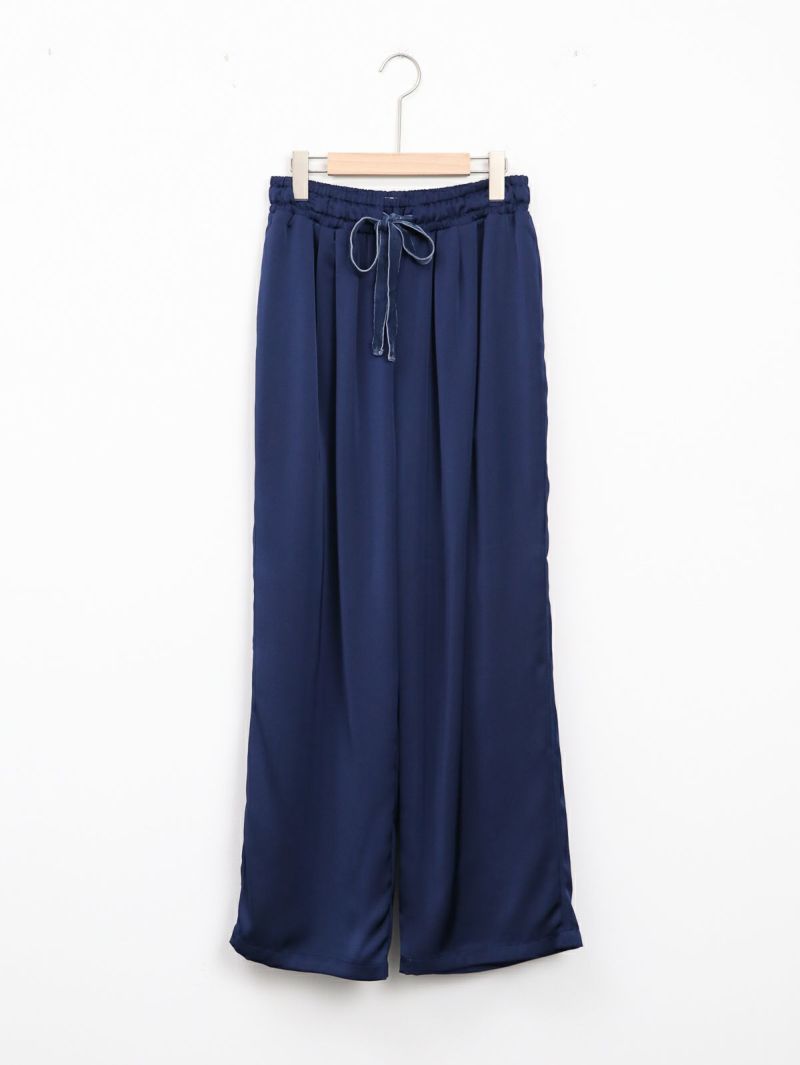 サラサラとした肌触りが気持ちよく、綺麗な落ち感が出るサテンリラックスパンツ。 柔らかさのある厚めの生地はラインが出にくく、透けにくい、1枚で今年らしいコーデが完成するアイテム。ウェストに入れたタックで立体感をだし、後ろにポケットをつけることでヒップラインをカバー。ブラウスときれいめコーデはもちろんTシャツ等と合わせたカジュアルコーデも◎