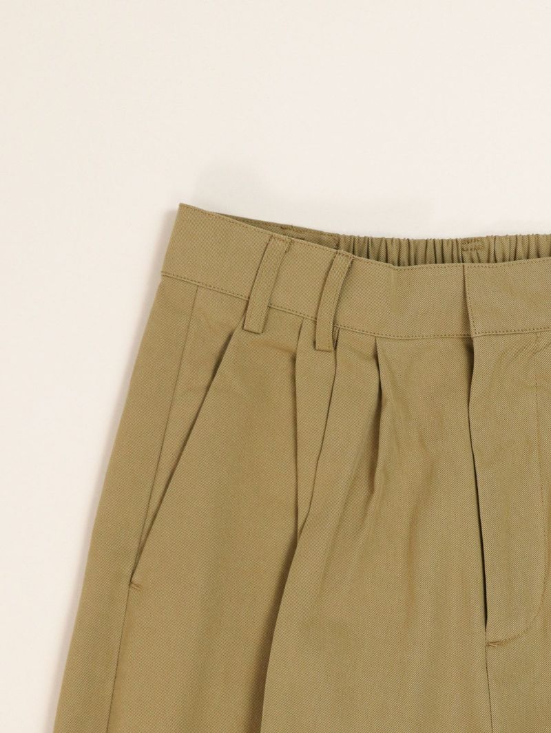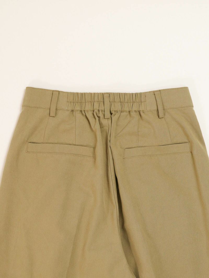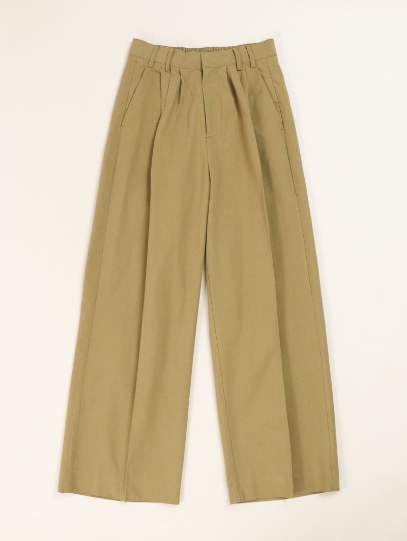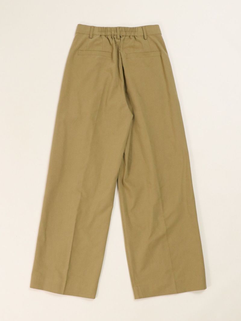 フロントにタックを入れ、コクーンシルエットを出した立体的なパンツ。 ウエストは後ろゴム仕様で、内側にはコードがついているので調整が可能です。存在感のあるワイドシルエットは、シンプルなトップスとのコーデがおすすめです。