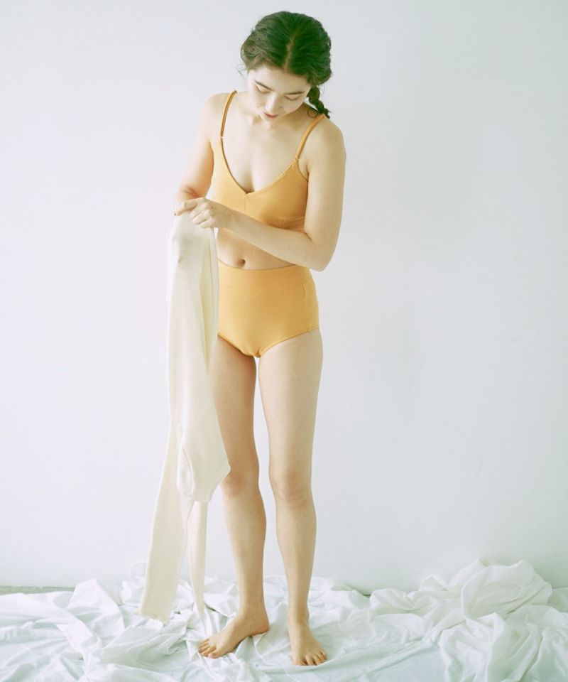 オーガニックコットンのベア天に、天然成分由来の抗菌防臭加工(グレープフルーツ種子から抽出)が施された生地「citoratec」を使用したショーツ。 ほどよくストレッチが効き、包み込まれる安心感があります。植物を思わせる爽やかな色は、どの色を組み合わせてもかわいいです。ウエストはゴムを使わず、お腹を覆う丈で包み込まれるようなシルエットに。クロッチを2重にし、サニタリーショーツとしても使用していただけます。