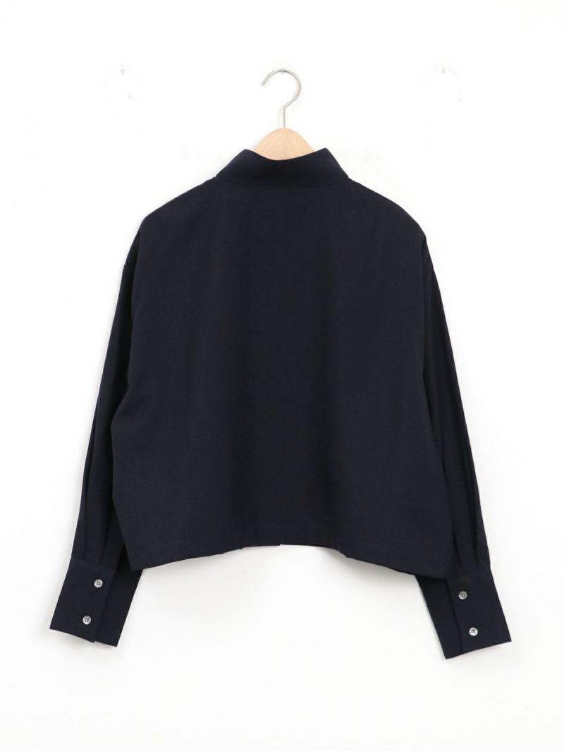 平織りサマーウールのSETTO定番オッカケシャツ。 クラシカルな雰囲気のスタンドカラーに、風を取り込むようなボックスシルエット。 身幅を広めにとった、ほどよくゆとりのあるフォルムが特徴です。短めの着丈と、長めのカフスがアクセントになり、全体のバランスにメリハリを。シンプルながら、細かなディテールにもこだわった一枚です。