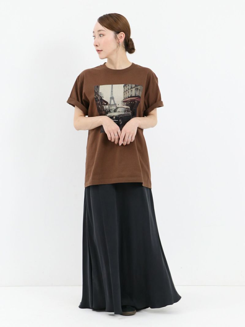 大人カジュアルにぴったりな フォトプリントTシャツ。 1枚でもサマになり、派手すぎないカラーなのでどんなスタイルにもなじみやすいです。ベストやジレなどを上から羽織るのもおすすめです。