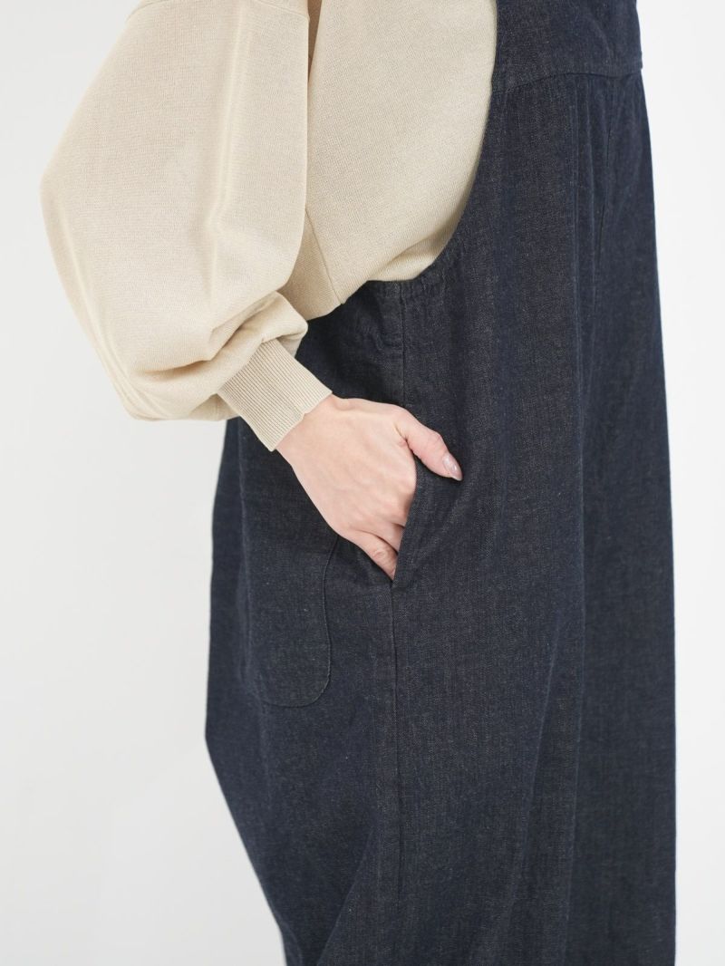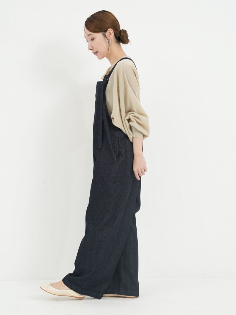 1枚で主役になるサロペット。 肩紐が細く、ワイドシルエットでもカジュアルになりすぎず、合わせるインナーや羽織り次第でマルチなスタイリングが叶うデザインです。 ※着丈は肩紐で調節可能。