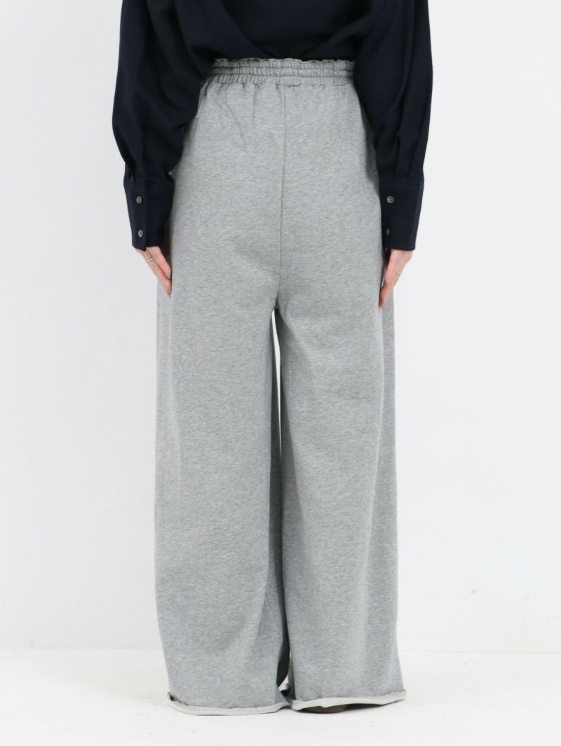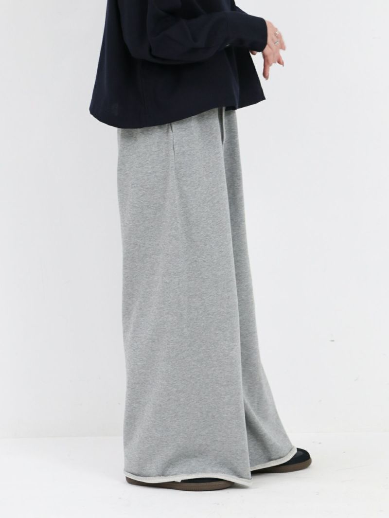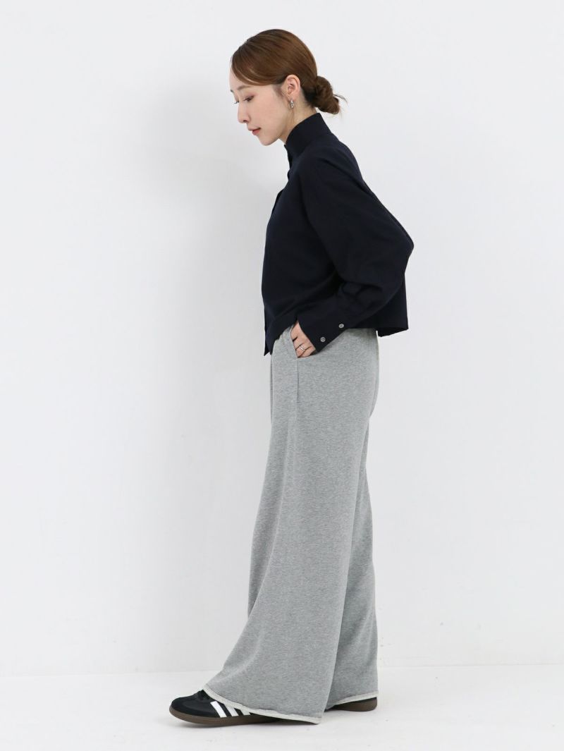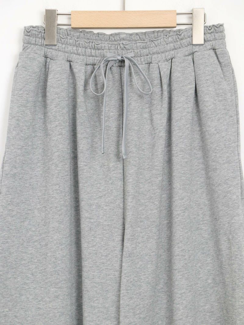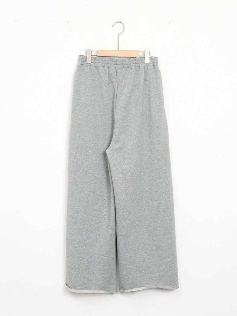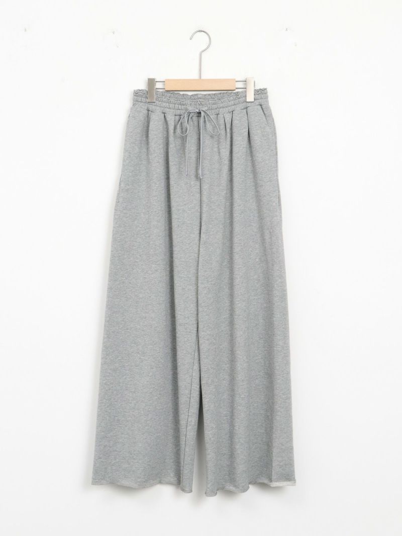 程よいルーズシルエットでキレイめに履けるのがポイントのスウェットパンツ。 裾は切りっぱなしデザインでカジュアル要素をプラス。肌離れが良く身体のラインを拾わないのでロングシーズン着用いただけます。裏面はふんわり柔らかいパイル生地、ウエストはドローストリングの太めのゴム仕様で締め付けの少ないリラクシーな穿き心地です。