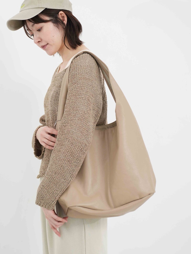 シボ感のある柔らかなレザーを使用したショッパーバッグ。 上品なワンハンドルの無駄のないデザインで使い込むほどに風合いが増す、上質なレザーを使用しています。シンプルなフォルムでどんなスタイリングにも馴染むデイリーに取り入れやすいアイテムです。