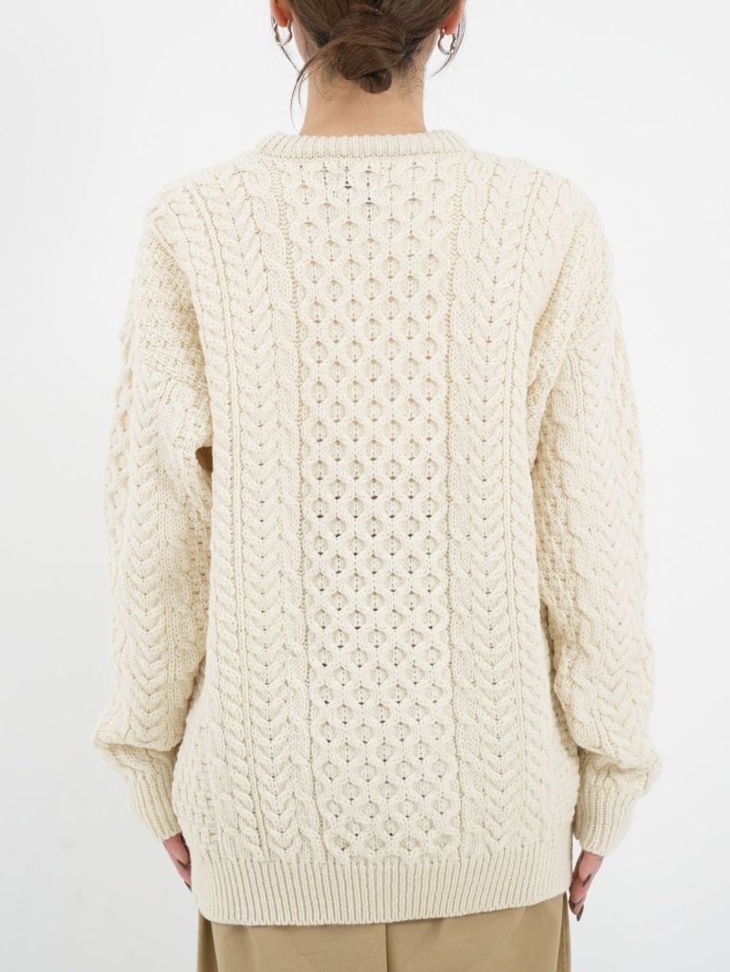 ケルト民族に伝わる複雑で美しいケーブル編みニットプルオーバー。 シンプルで立体感のある網目模様は1枚で着ても様になり、時代やトレンドに左右されないデザインです。ワイドパンツなどと合わせてラフな雰囲気を楽しんだり、スカートと合わせてフェミカジコーデもおすすめです。