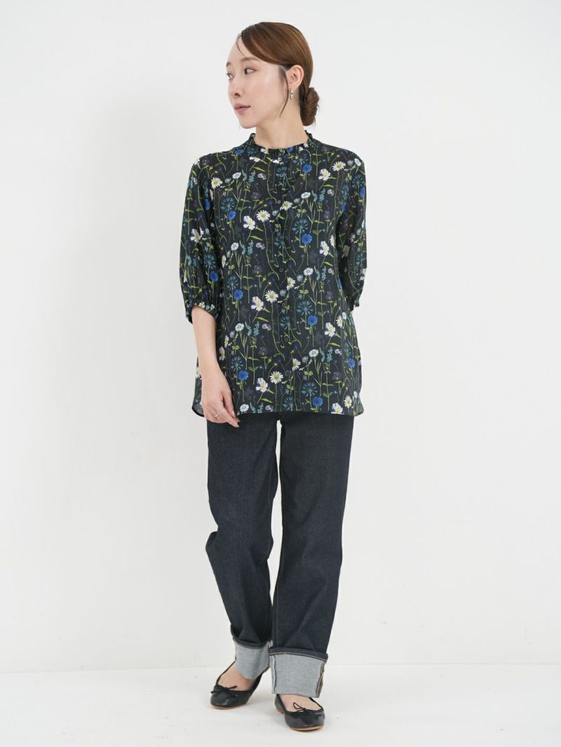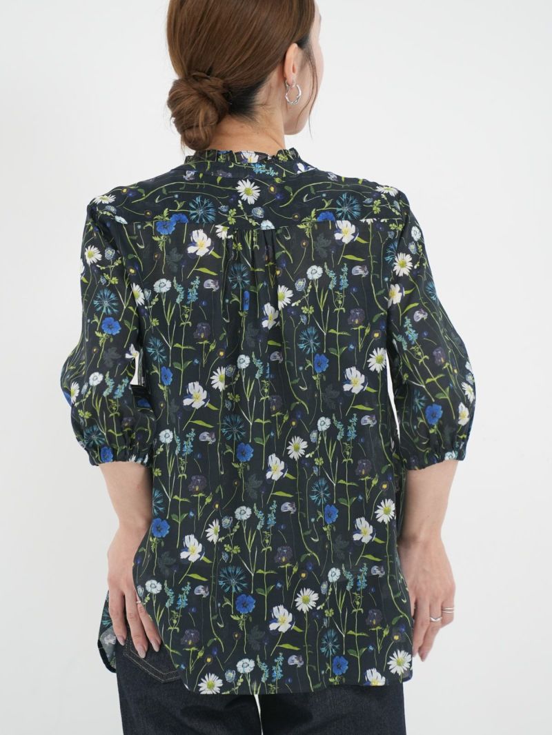品よく華やぐ、リバティプリント生地を使用したブラウス。