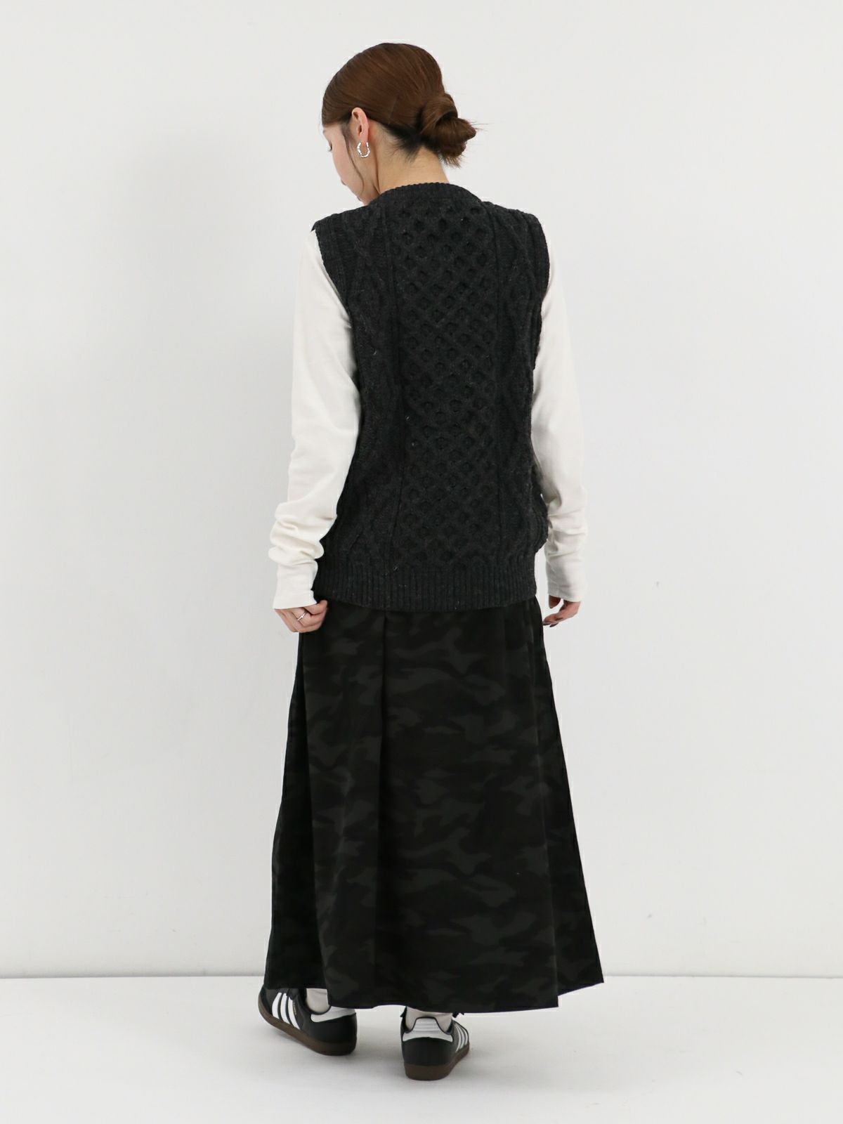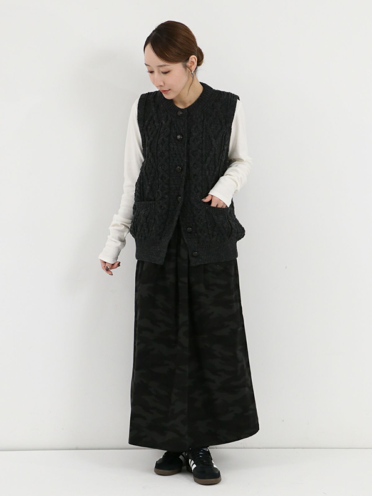 [ vent blanc / ヴァンブラン ] カモフラギャザーロングスカート