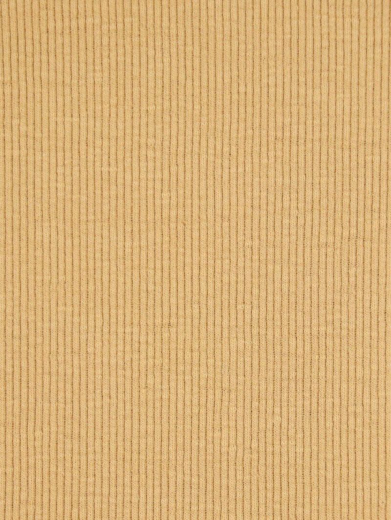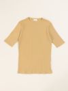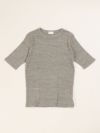 コットン生地のテレコ5分袖T。 自然なムラ感のある優しい質感は落ち綿を使用したリサイクル糸の風合いのある魅力的な仕上がり。ピタッとしすぎない絶妙なサイズ感で1枚でも着やすく秋口まで活躍します。