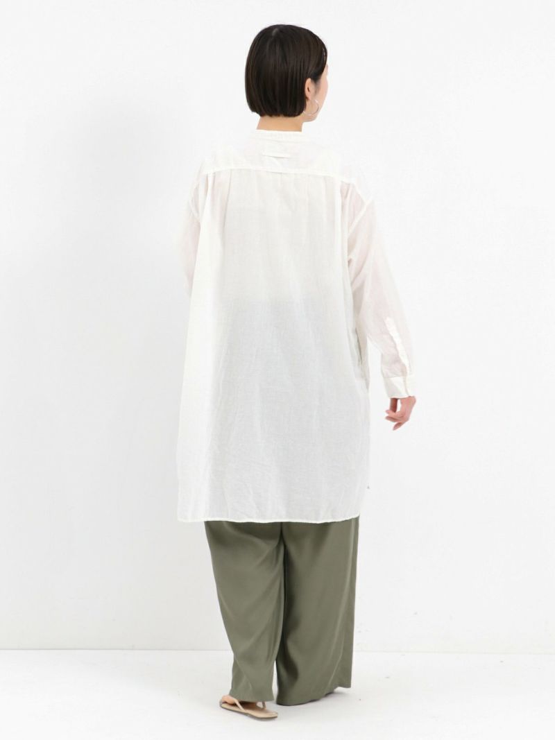 AEMEN定番のガーゼロングシャツ。 バンドカラーで襟元がすっきりしていて羽織りに使いやすいデザインです。ヒップラインが隠れるロング丈も◎。今からのシーズン日焼け予防や冷房対策にも便利です。肌触りが良くストレスフリーな着心地も魅力的。