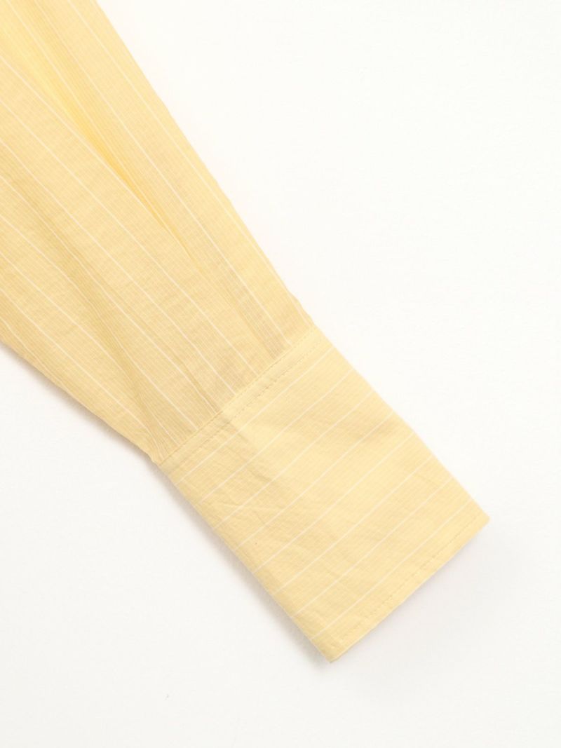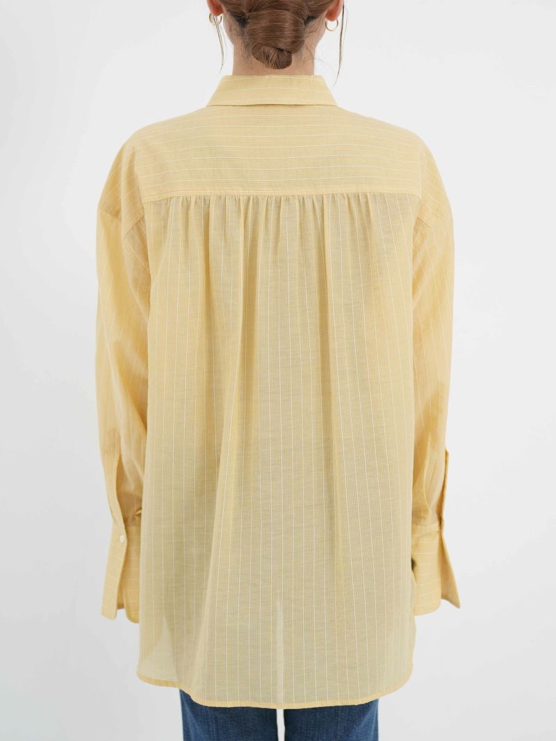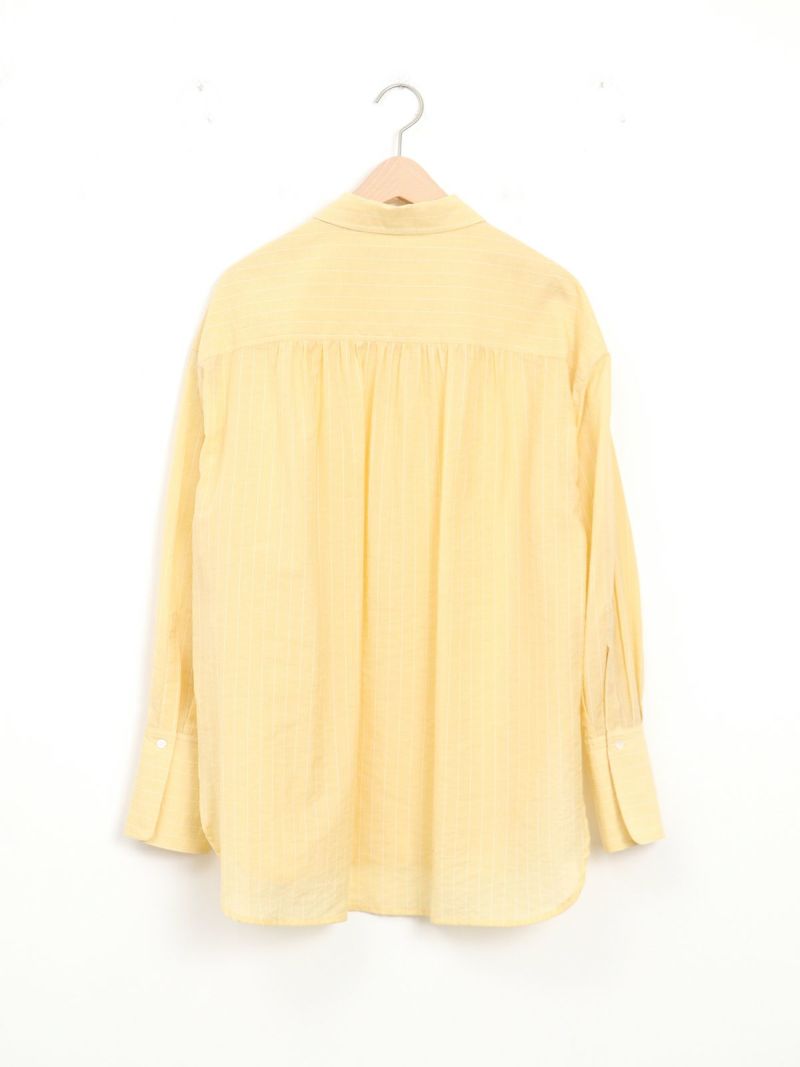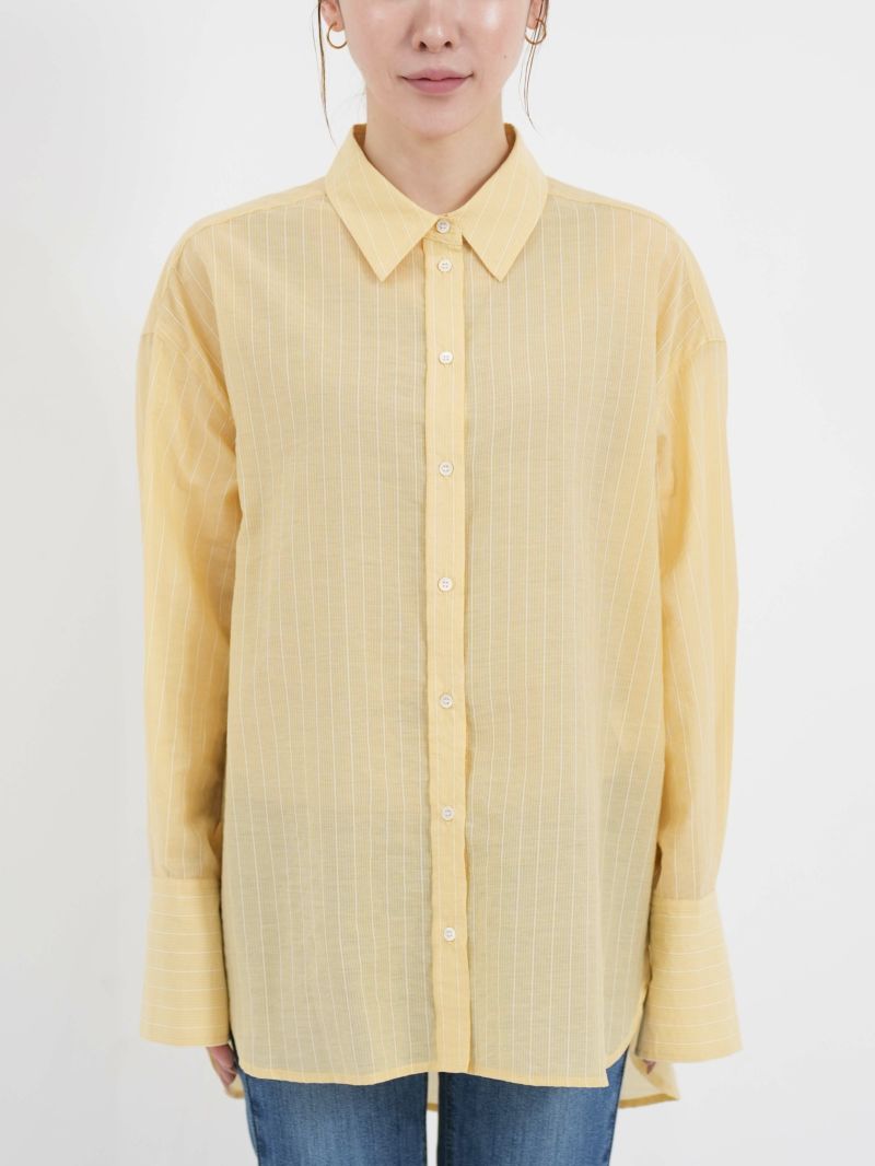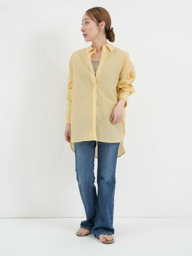 程よくゆったりとしたサイズ感にシアーのストライプが今年らしいデザインのシャツ。 前後差のある着丈はボリュームのあるボトムスとの相性も良く、アイテムを選びません。夏場の冷房対策にも◎