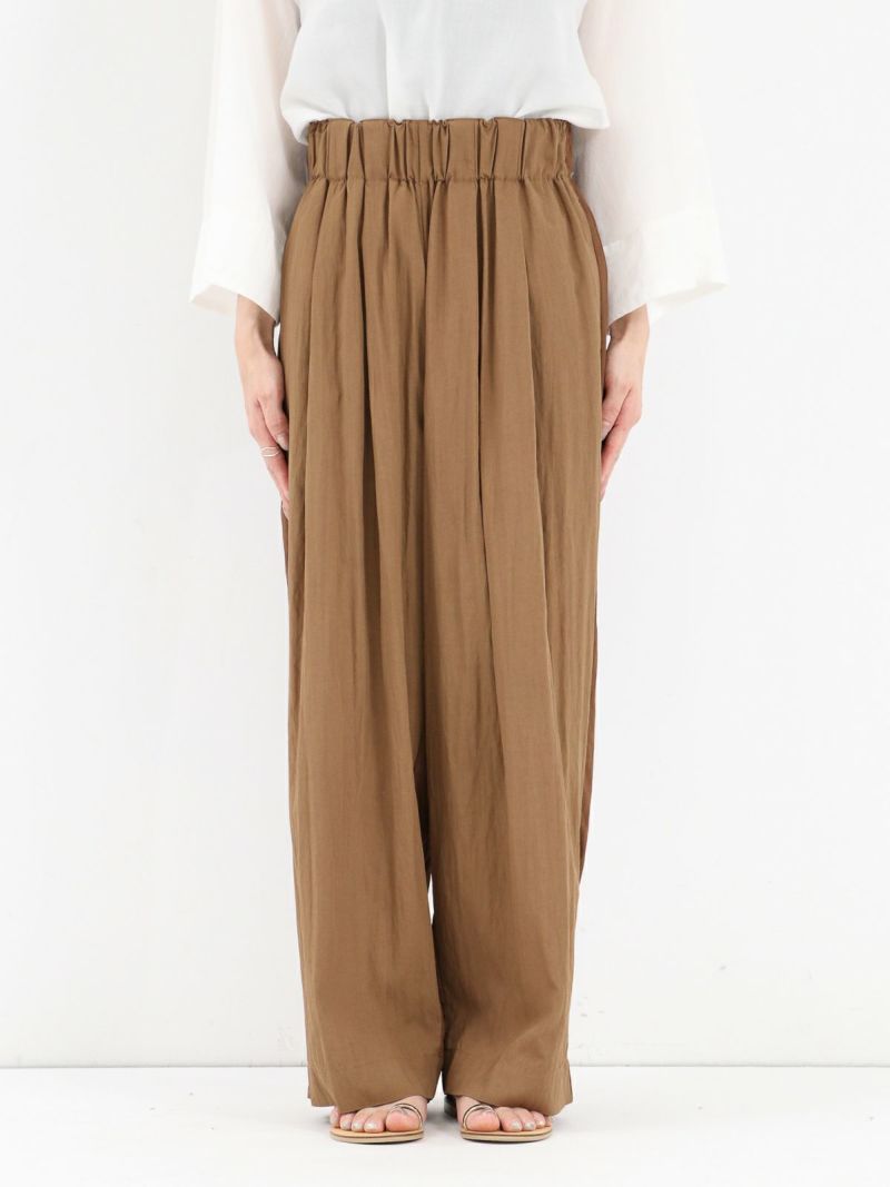 洗いざらしのような自然なシワ感が出るようにワッシャー加工が施されており、上品な光沢がビンテージライクな表情に仕上げています。さらりと肌に触れ、汗ばむ季節も快適な履き心地を実感いただけると思います。 ※Brownのみ前後で色味が異なります。