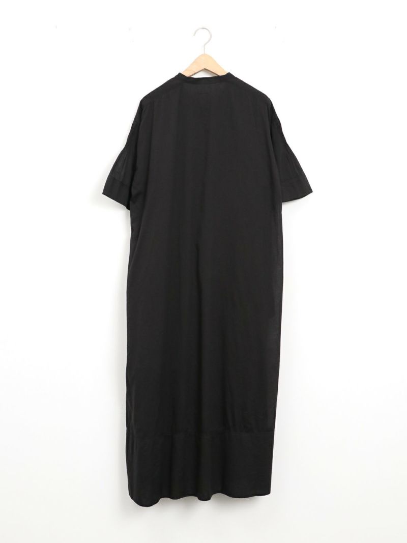 コットンボイル生地を使用した、柔らかくふんわりとした軽い着心地のワンピース。程よい透け感で裾に向かって広がるシルエットがサマになり存在感のある一枚です。