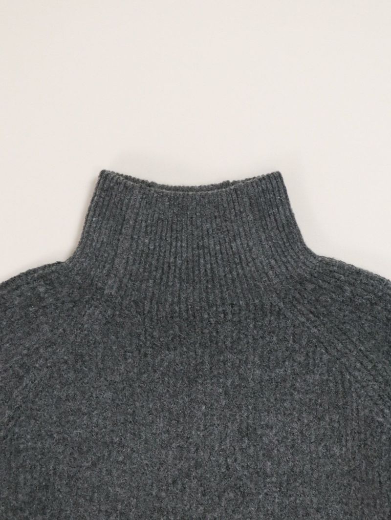 ウール混のストレッチヤーンを使用したハイネックビッグプルオーバー。