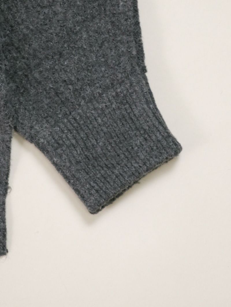 柔らかく膨らみのある編み地が特徴で、高い伸縮性がある為動きやすく快適な着心地に。また、凸凹とした表情豊かな風合いとボリュームのあるスリーブで一枚でもさまになり、合わせるボトムスを選ばず幅広いスタイリングで活躍してくれます。