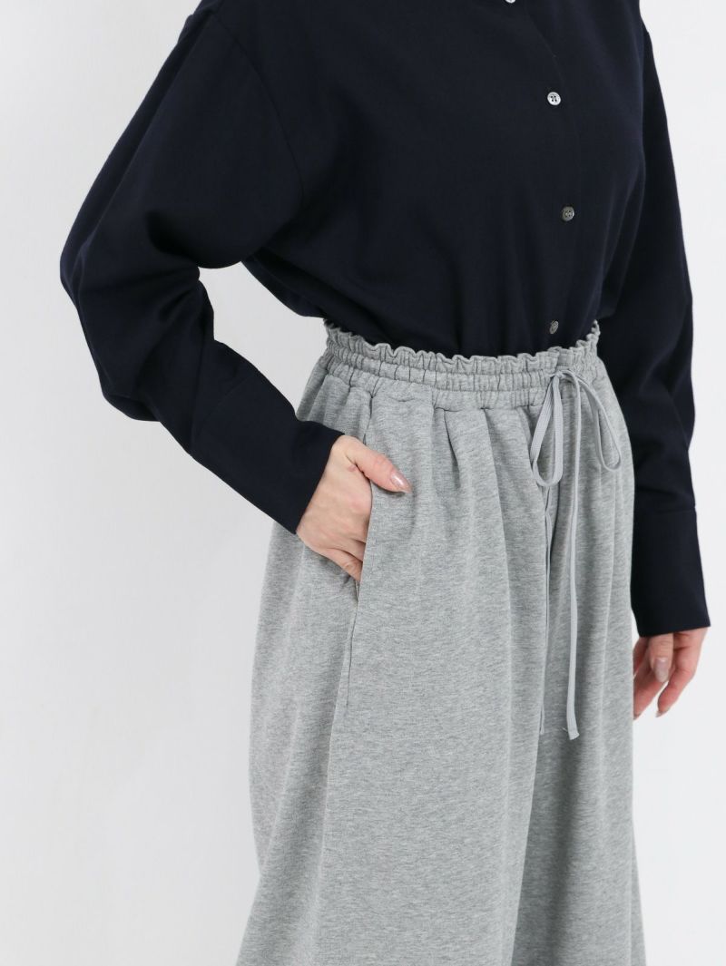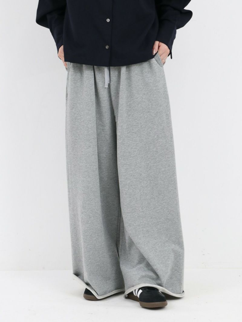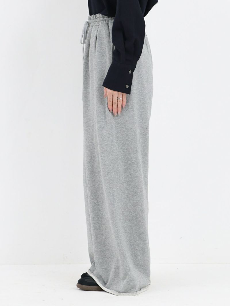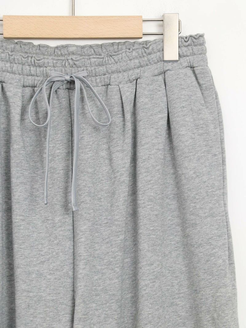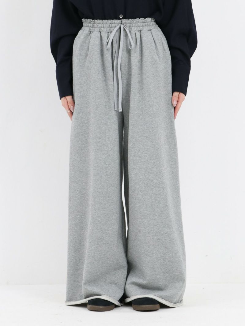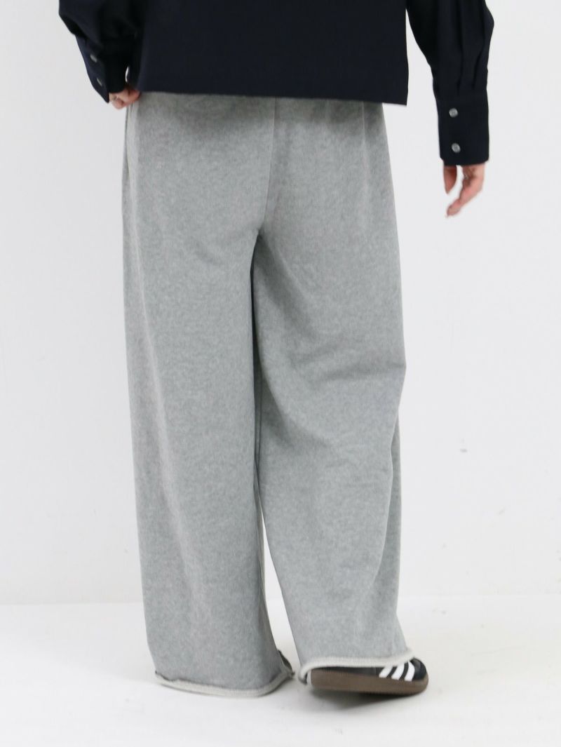 程よいルーズシルエットでキレイめに履けるのがポイントのスウェットパンツ。 裾は切りっぱなしデザインでカジュアル要素をプラス。肌離れが良く身体のラインを拾わないのでロングシーズン着用いただけます。裏面はふんわり柔らかいパイル生地、ウエストはドローストリングの太めのゴム仕様で締め付けの少ないリラクシーな穿き心地です。