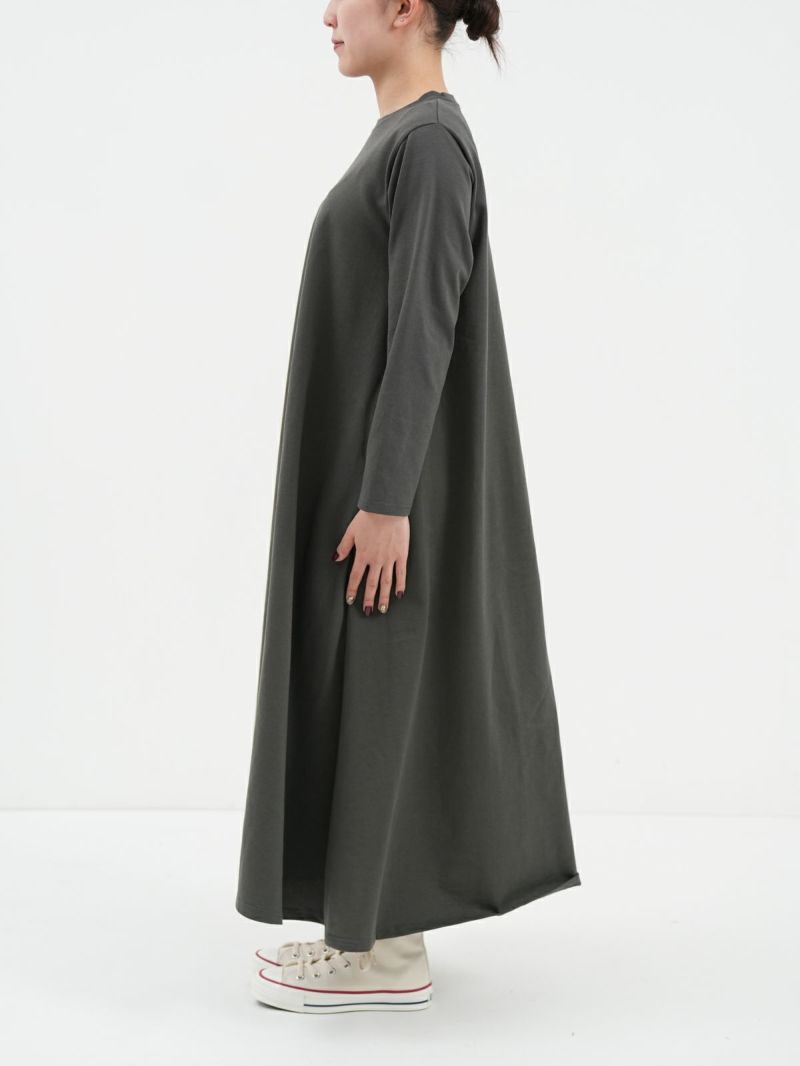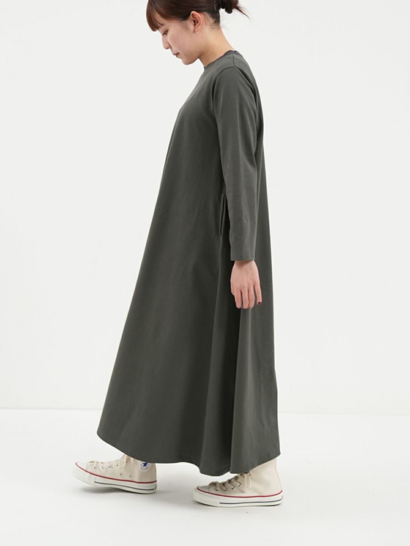 きれいなAラインシルエットのコットンワンピース。 シンプルながら存在感があり1枚で様になるアイテムです。国内生地、国内製法にこだわったしっかりとした生地は体のラインを拾わずに快適に着用いただけます。