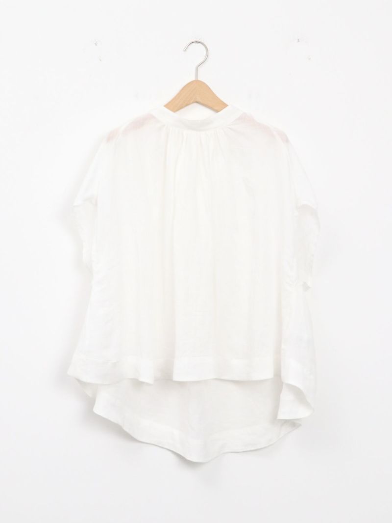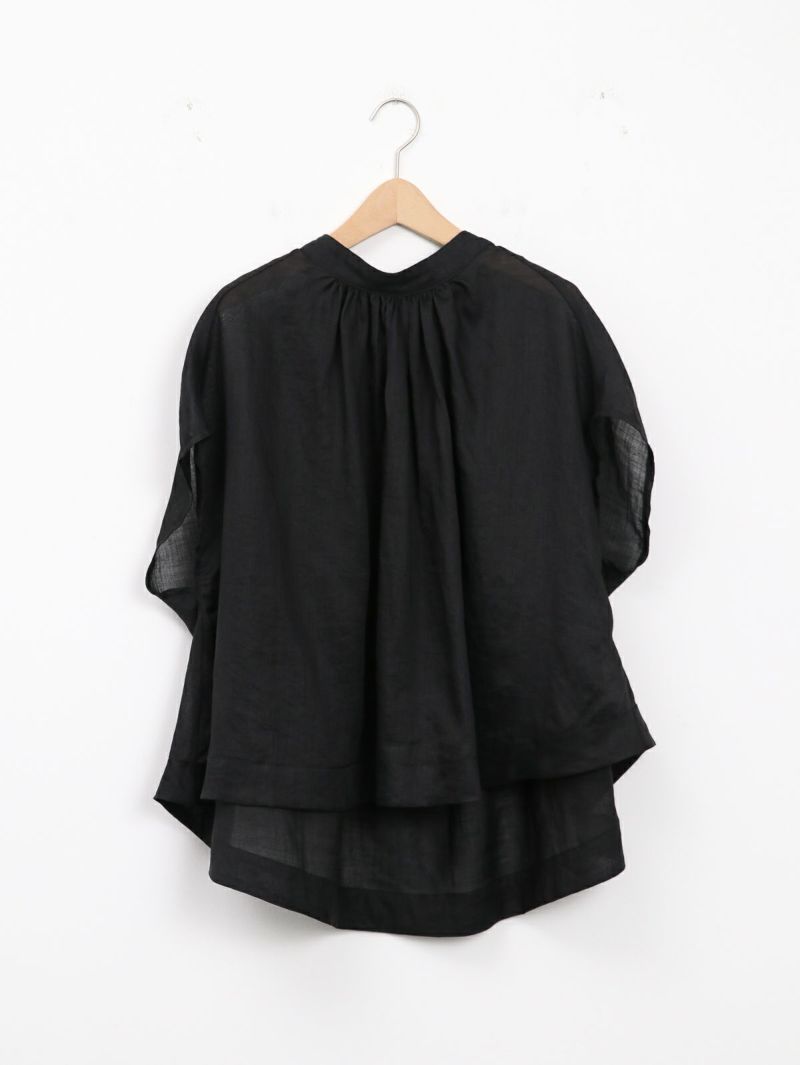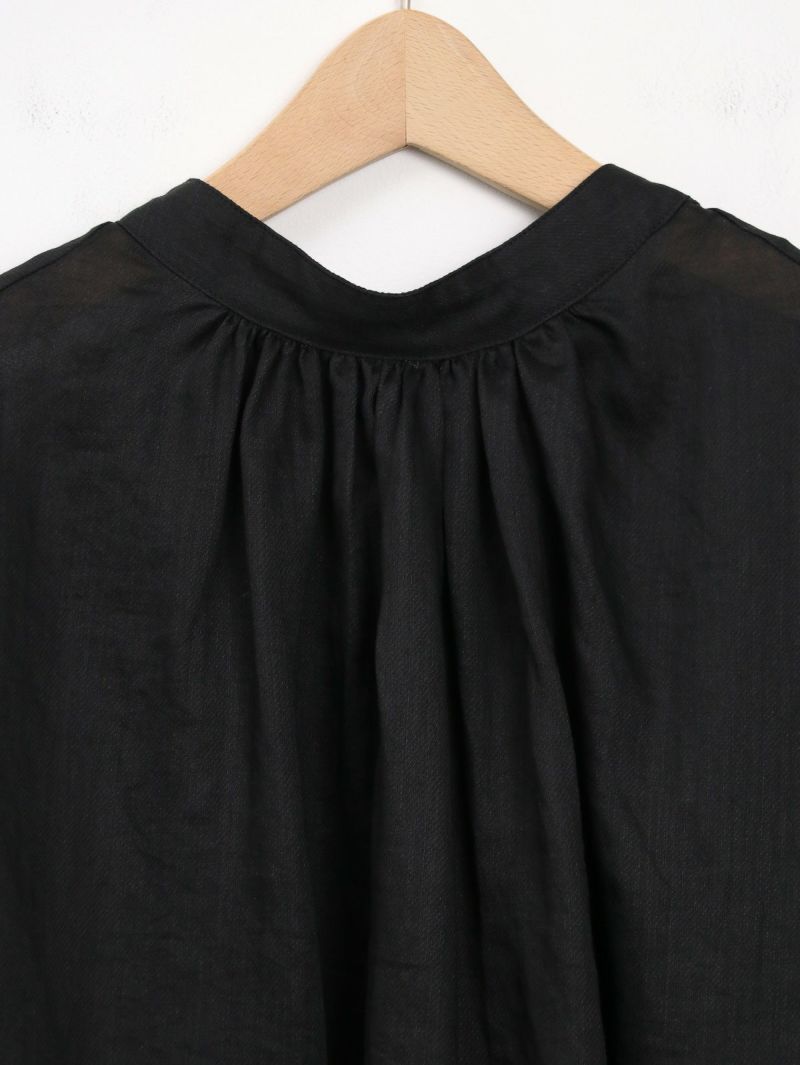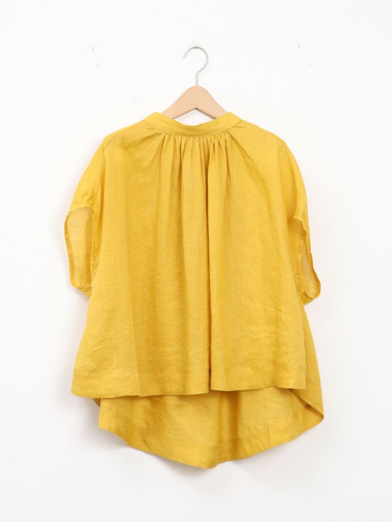 リネンのシャリ感とテンセルのしなやかさの両方を併せもったブラウス。 涼やかでナチュラルな雰囲気と大人な透け感を楽しめるリネンツイル生地。風通りが良く動くたび揺れるシルエットが印象的です。デニムと合わせてカジュアルに、キレイめなボトムと合わせてオフィスにと活躍する1枚です。