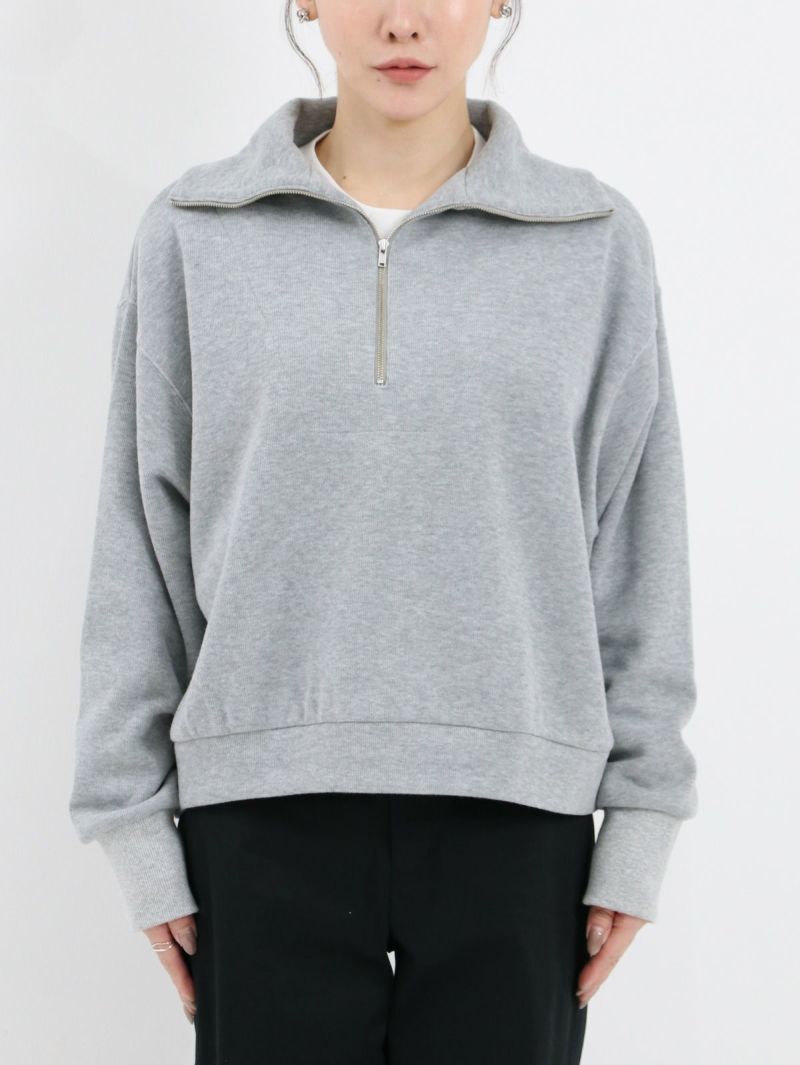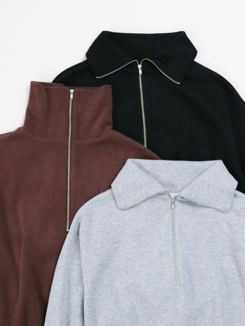 膨らみのあるダブルフェイス生地で仕立てたハーフジッププルオーバー。 適度な厚みで身体のラインを拾わず立体感が出ます。ジップの開け具合で首元のニュアンスの変化を楽しめ、インにシャツやタートルネックなどを合わせたレイヤードスタイルもおすすめです。同素材のスカートとのセットアップ着用も可能。