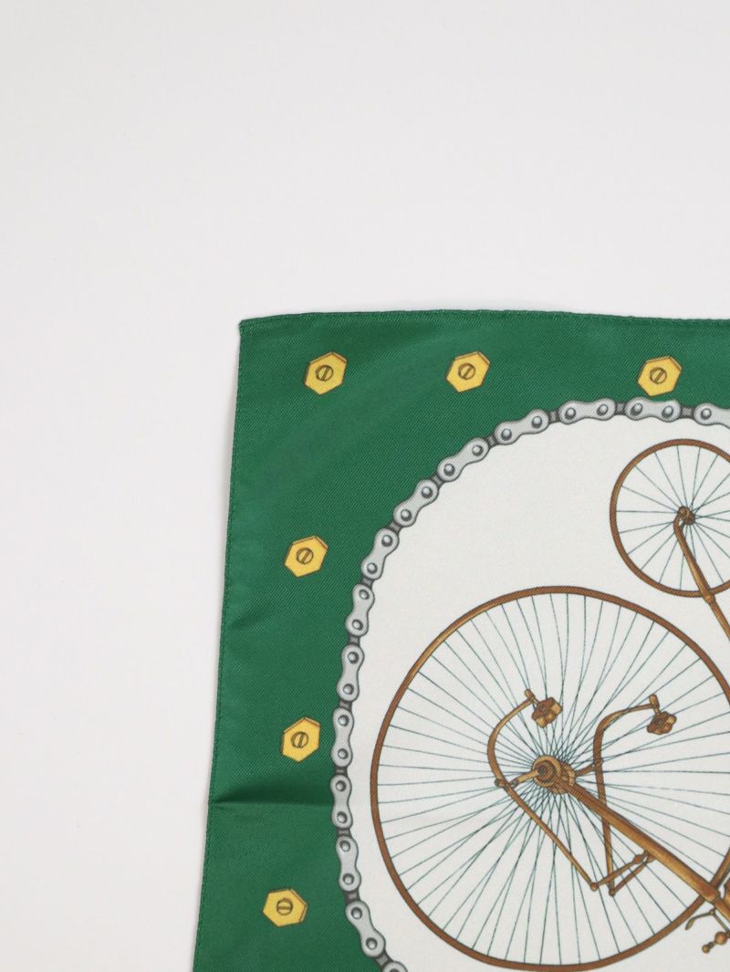 自転車をモチーフにしたクラシック柄の大判スカーフ。 ポリエステル100%ながらも高級感のある滑らかな肌触り。首元に巻いたり、バッグに取り付けたりと様々なシーンやコーディネートのアクセントに◎